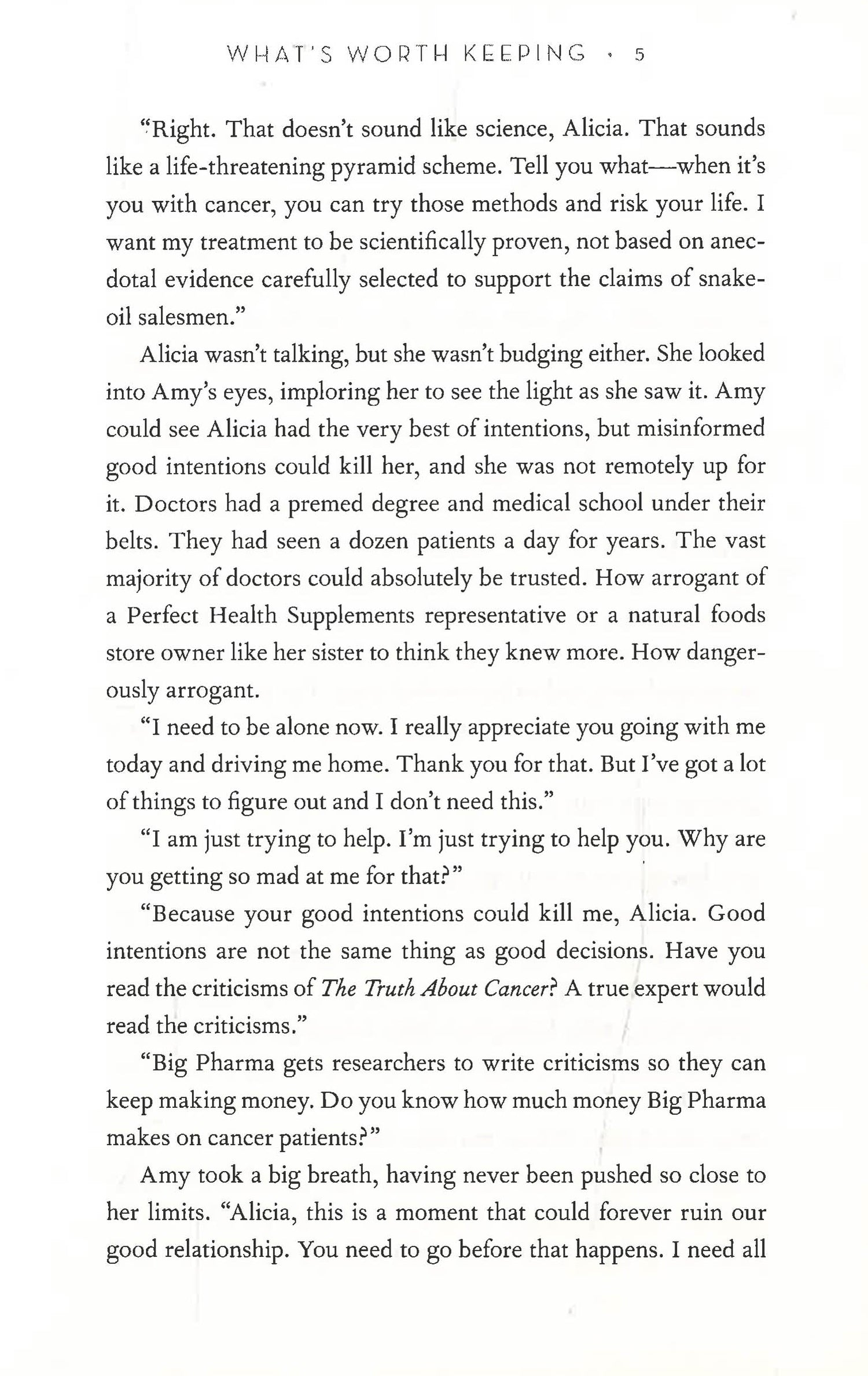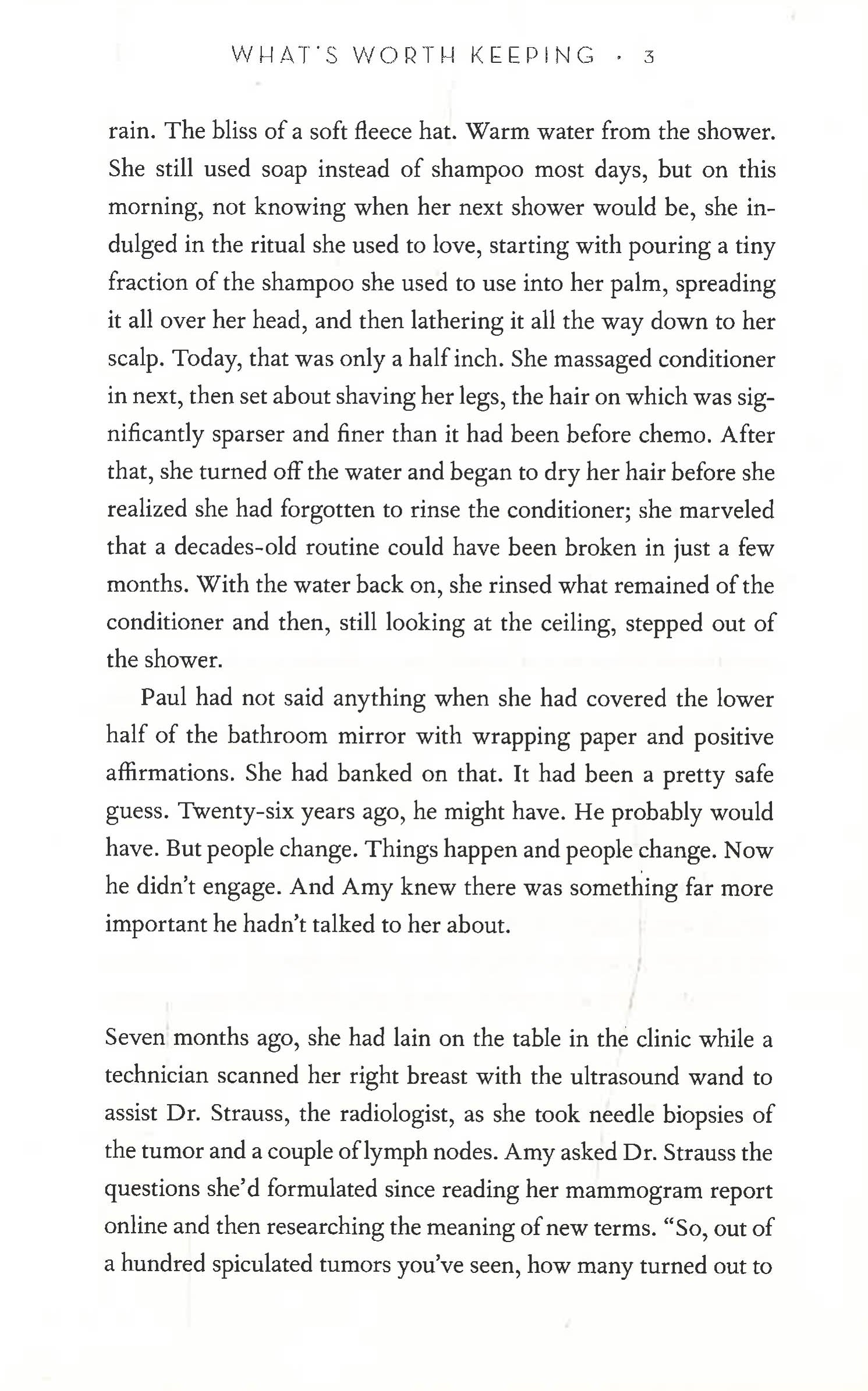 The day her doctor says the one word that no one wants to hear, Amy Bergstrom discovers a secret that her husband of 25 years has been keeping from her. Now that the months of treatment and surgeries are behind her, she escapes her claustrophobic life seeking healing, peace and clarity in an ancient forest in Washington State, a forest that holds memories of her childhood summers. After dropping off his daughter at Amy's Aunt Rae's horse ranch in the mountains of New Mexico, Officer Paul Bergstrom visits the fixer-upper he had bought years ago as a place to retire with his family. Although it appears fine on the outside, the inside is a disaster-just like his marriage. When he finds himself with more off-duty time than he expected, he lovingly repairs his dream home, building the future he so desperately wants. Witnessing her mother's health crisis had been terrifying enough, but learning the cause was genetic leaves Carly with the sense that all of her dreams are pointless. With the help of her eccentric great aunt and a Clydesdale named T. Rex, Carly just may find her faith in her future again. Amy, Paul, and Carly discover that love and family are worth keeping in this powerful, emotional, and hopeful novel.