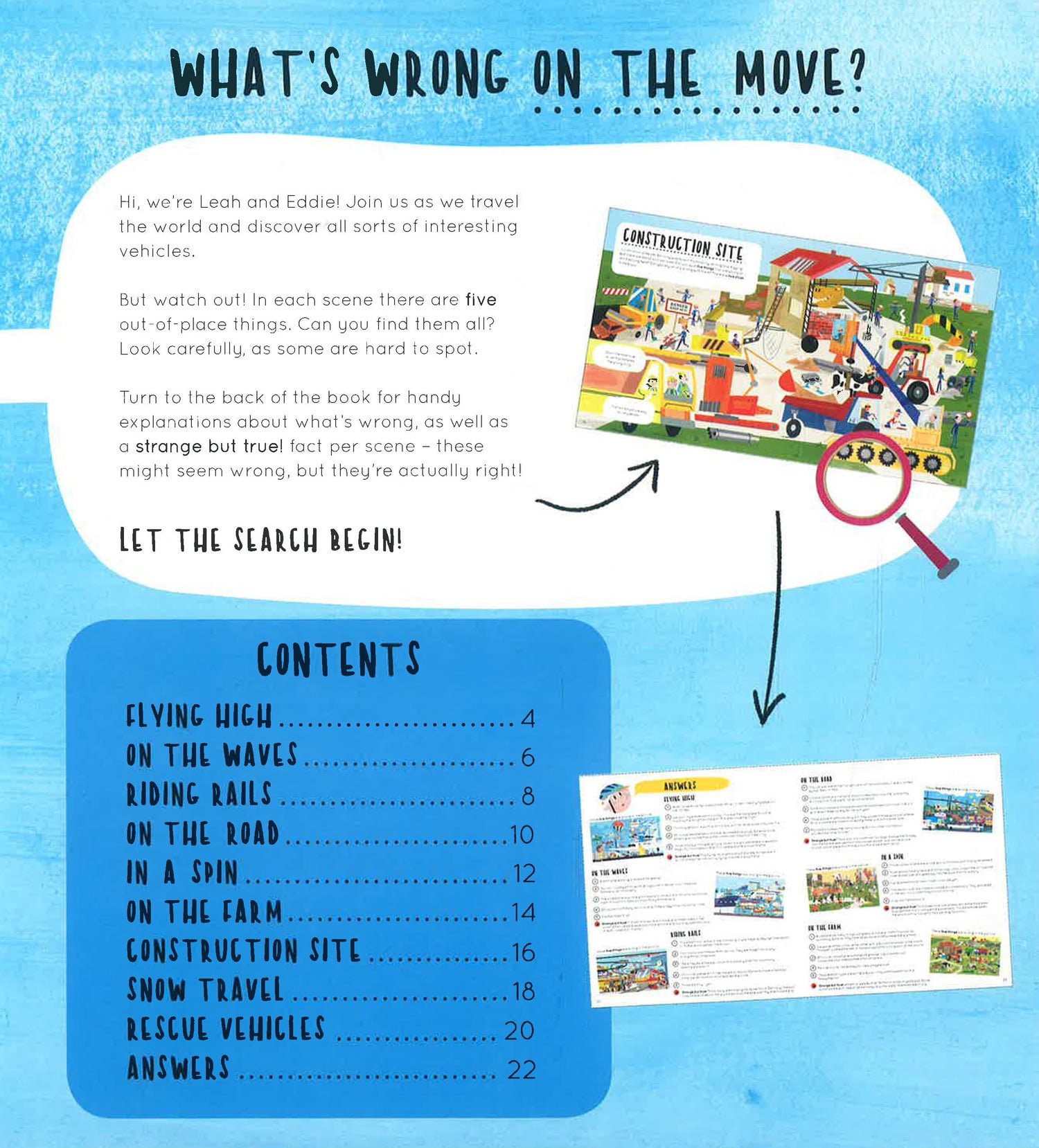 Detailed full spread scenes each feature five out-of-place or 'wrong' things to find. Lively text provides facts and clues as well as key information about the wrong... and the right things included in the scenes. Designed to challenge your children and push them to work things out for themselves, they'll also be encouraged to think about where the 'wrong' things do belong.