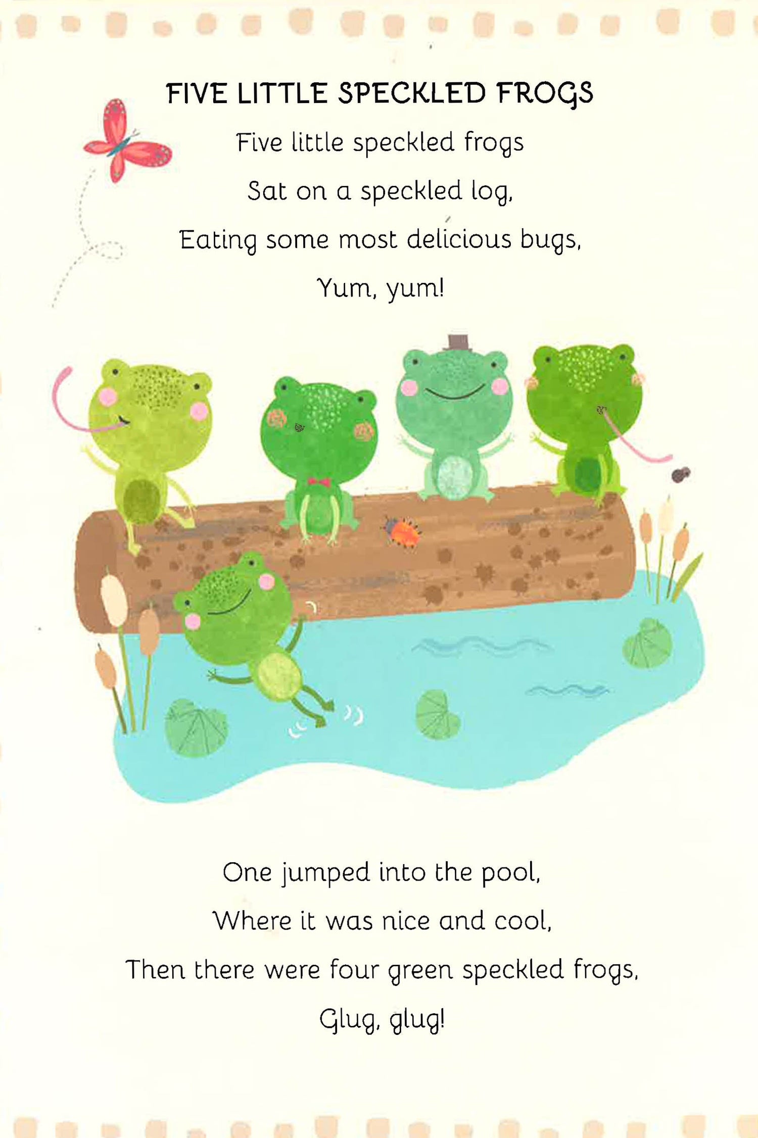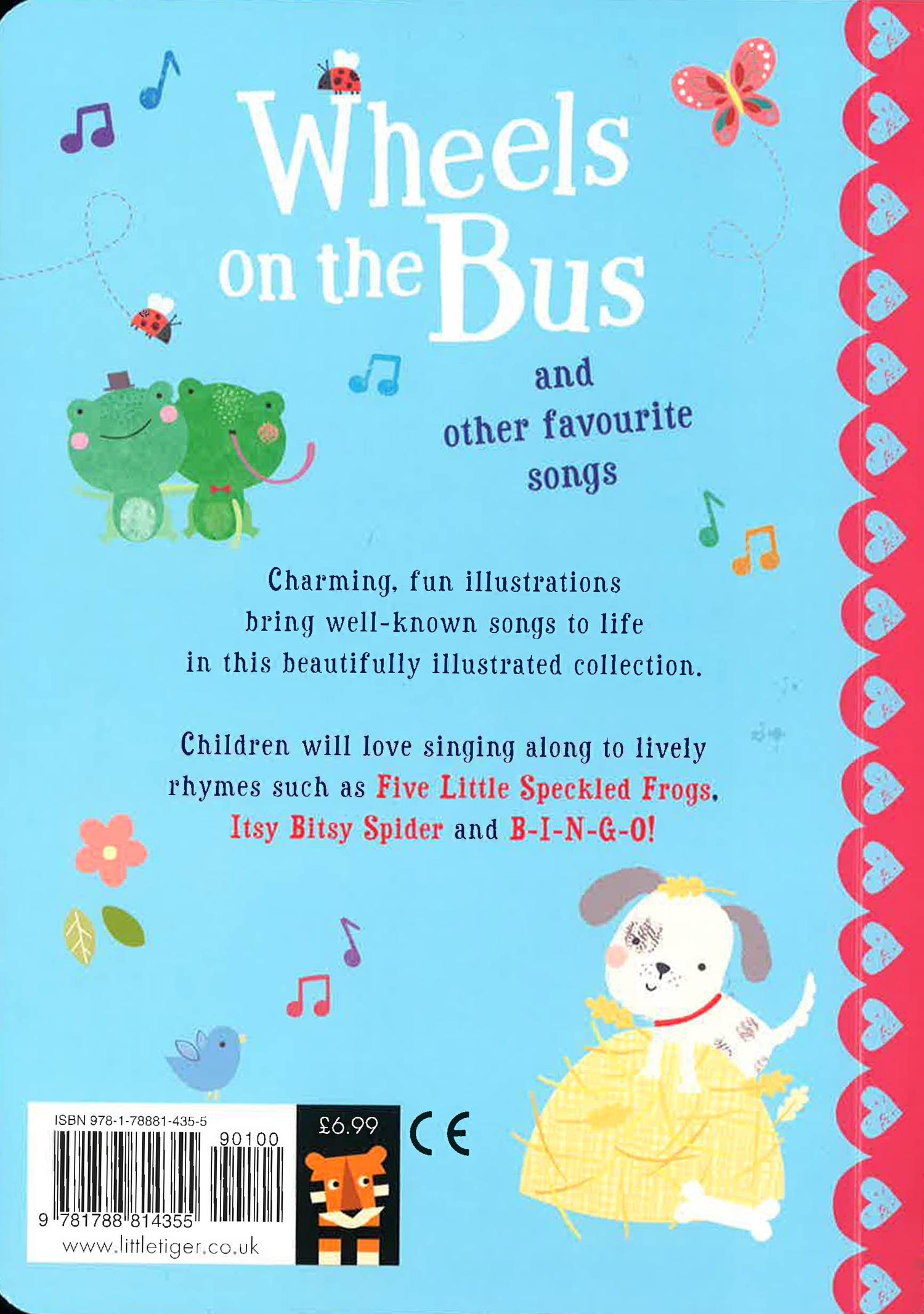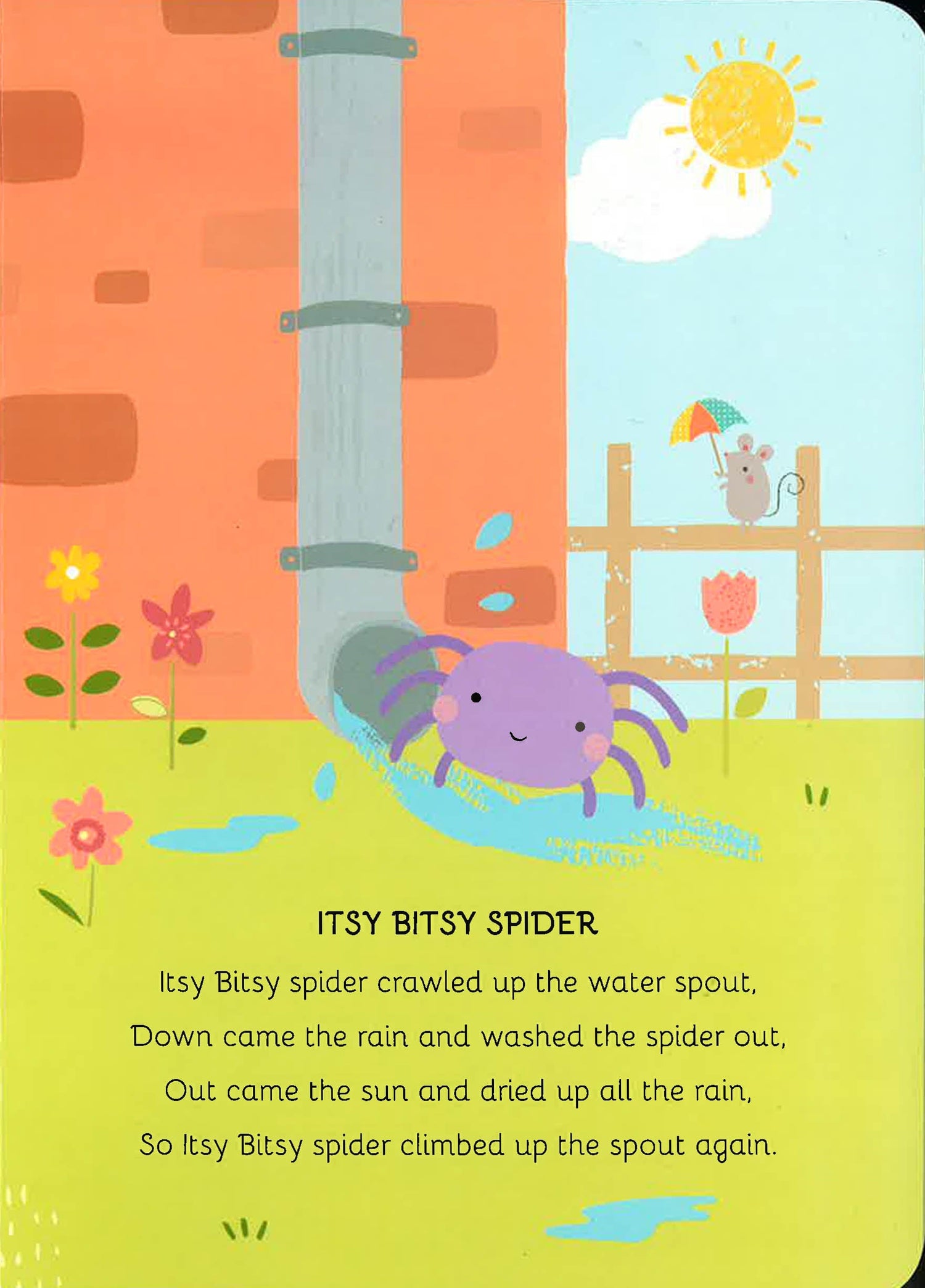 Charming, fun illustrations bring well-known songs to life in this beautifully illustrated collection. Children will love singing along to lively rhymes such as Five Little Speckled Frogs, Itsy Bitsy Spider abg B-I-N-G-O!