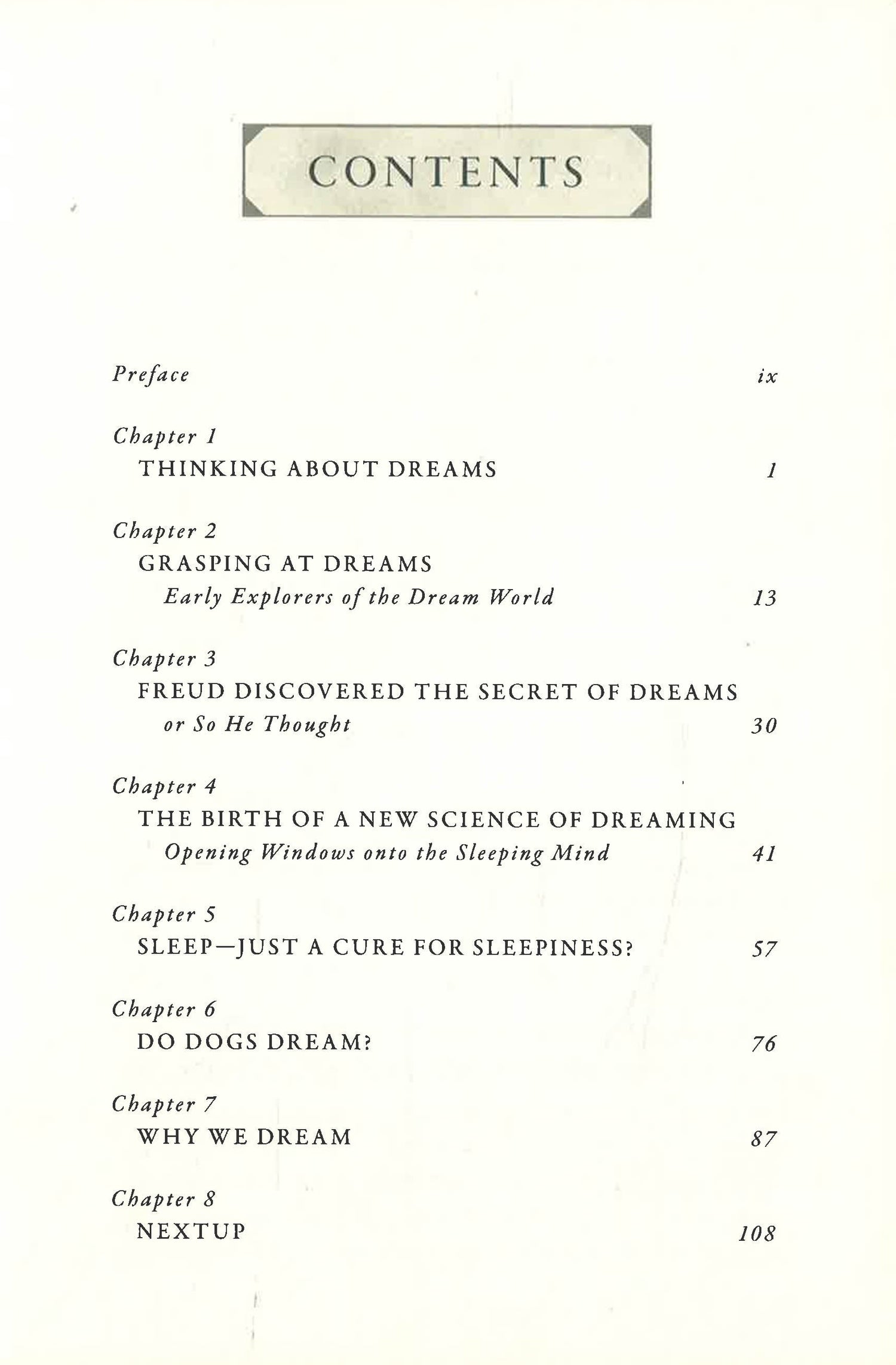 Questions on the origins and meaning of dreams are as old as humankind, and as confounding and exciting today as when nineteenth-century scientists first attempted to unravel them. Why do we dream? Do dreams hold psychological meaning or are they merely the reflection of random brain activity? What purpose do dreams serve?