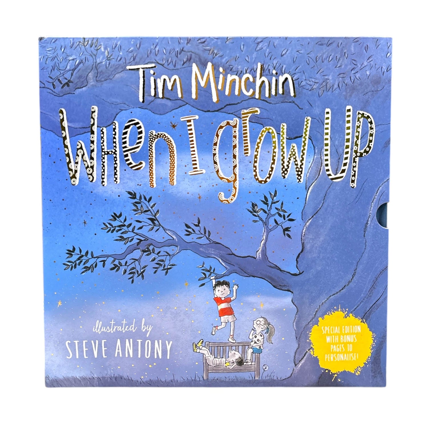 When I grow up,I will be tall enoughto reach the branches that I need to reachto climb the treesyou get to climb when you're grown up. A group of children imagines all of the things that they will be able to do once they grow up, and they plan to do anything and everything. They hope to solve problems, play in the sun all day long, be brave, and even eat ice cream all day. The combination of Tim Minchin's Tony Award-winning Matilda the Musical lyrics and Steve Antony's joyful artwork is sure to inspire readers of all ages to explore the endless possibilities that the future could have in store.