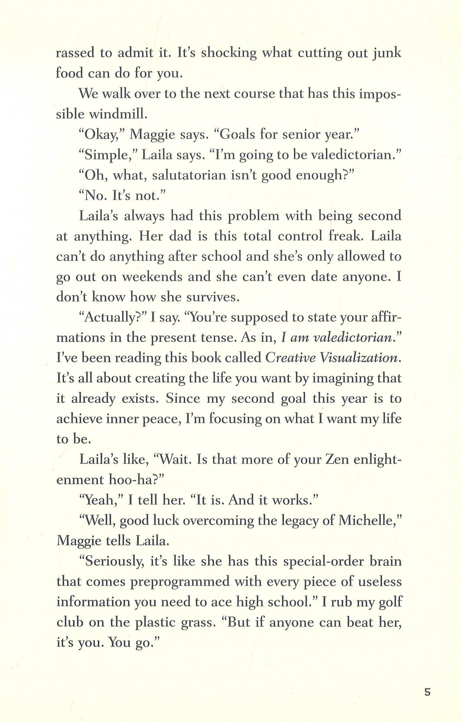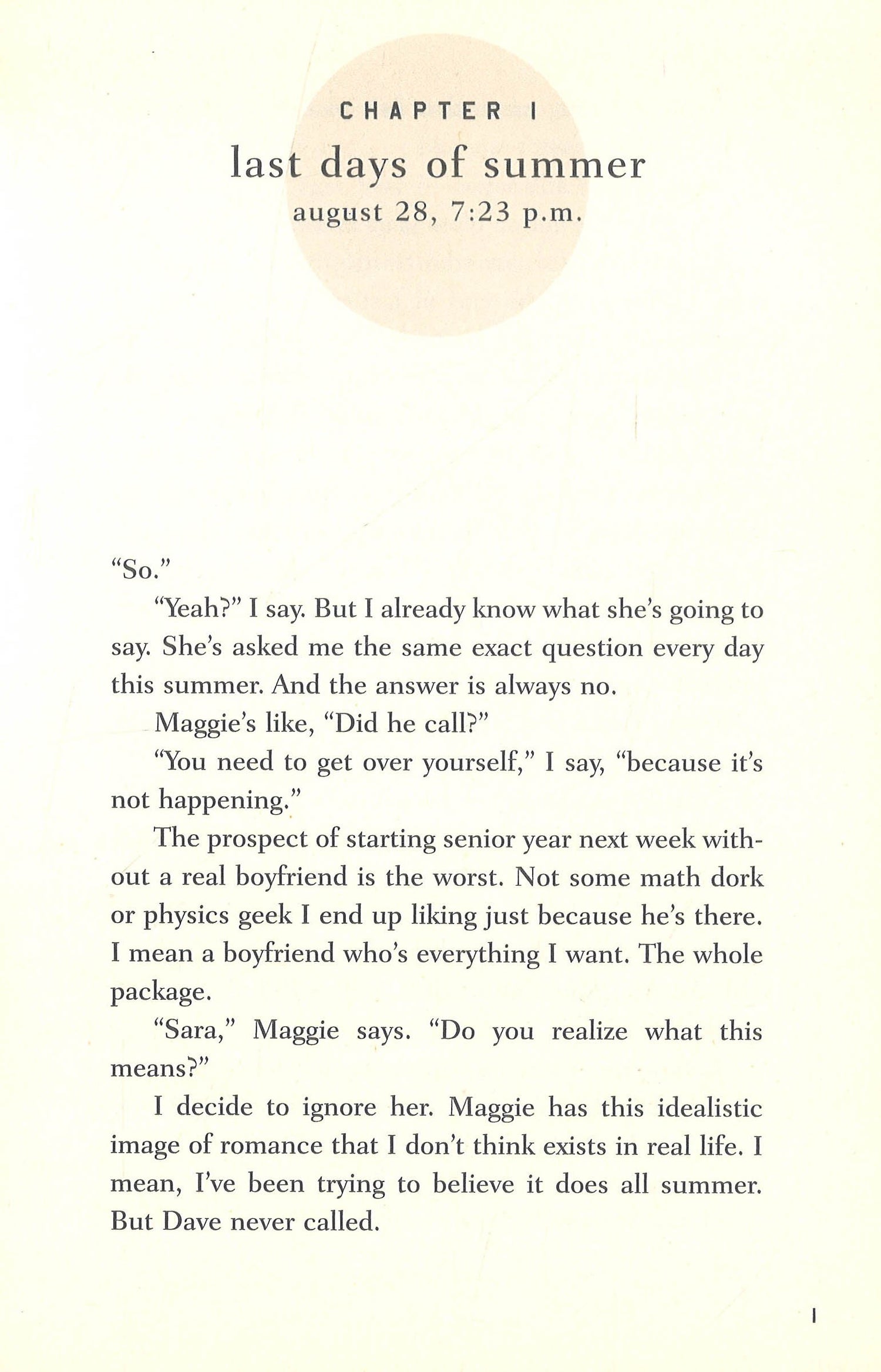 Sara and Tobey couldn't be more different. She is focused on getting into her first-choice college; he wants to win Battle of the Bands. Sara's other goal is to find true love, so when Dave, a popular jock, asks her out, she's thrilled. But then there's Tobey. His amazing blue eyes and quirky wit always creep into her thoughts. It just so happens that one of Tobey's goals is also to make Sara fall in love with him. Told in alternating points of view, Sara and Tobey's real connection will have everyone rooting for them from the minute they meet!