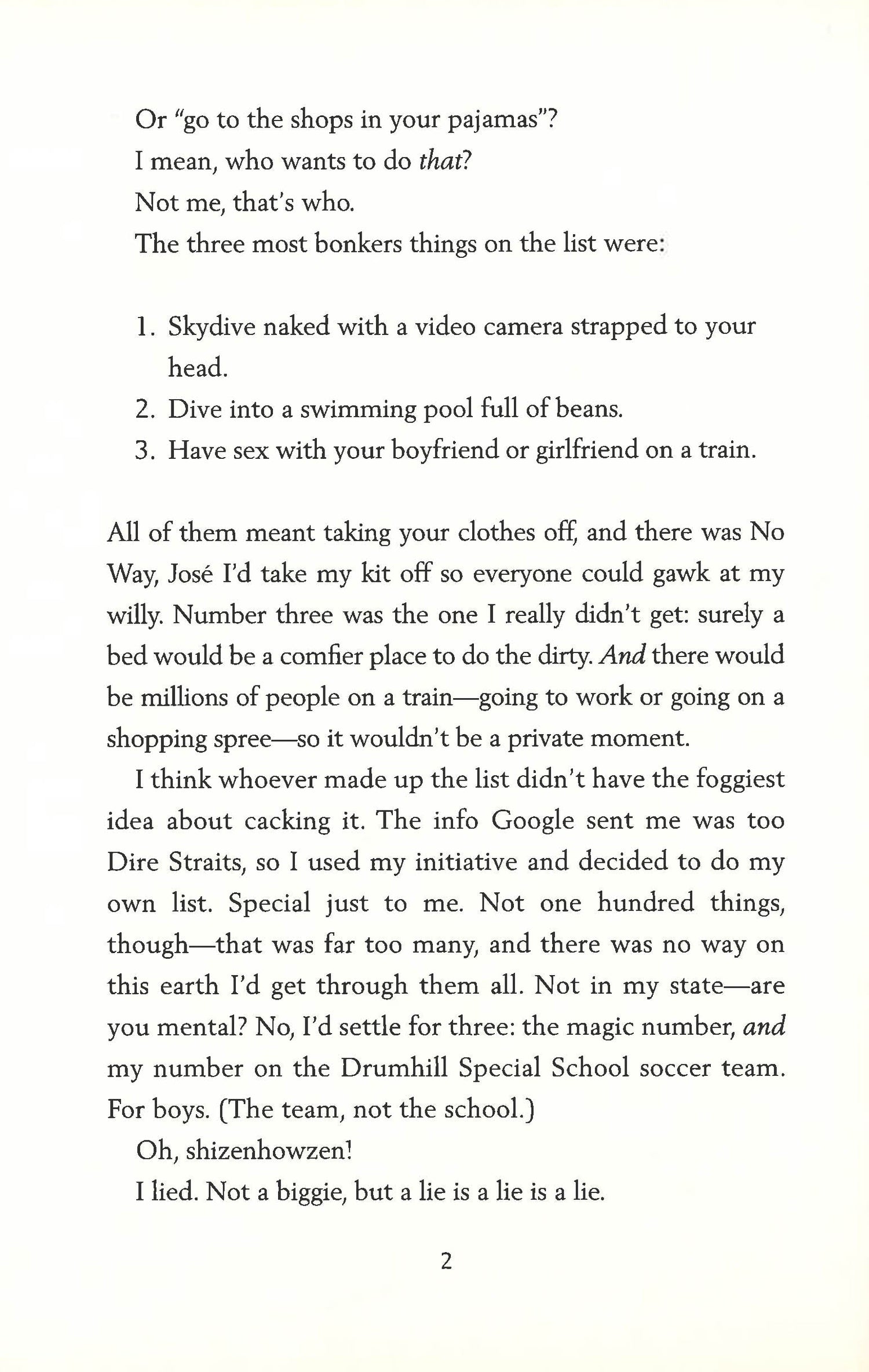 A blindingly funny, poignant, and unforgettable story of a teen's struggle to confront his Tourette's and to take charge of his life. All Dylan Mint has ever wanted is to keep his Tourette's in check and live life as a "normal" teenager. The swearing, the tics, the howling "dog" that escapes when things are at their worst--nothing about Tourette's makes it easy to meet cute girls or have normal friends (or many friends at all). But a routine hospital visit changes everything-- Dylan overhears that he's going to die. In an attempt to claim the life he's always wanted, he decides to grant himself parting wishes, or "Cool Things To Do Before I Cack It". In an intimate portrayal of life with Tourette's, Dylan's journey to come to terms with the disorder that has defined his life and his preconceptions about the world around him is hilarious, painful and, ultimately, utterly masterful.