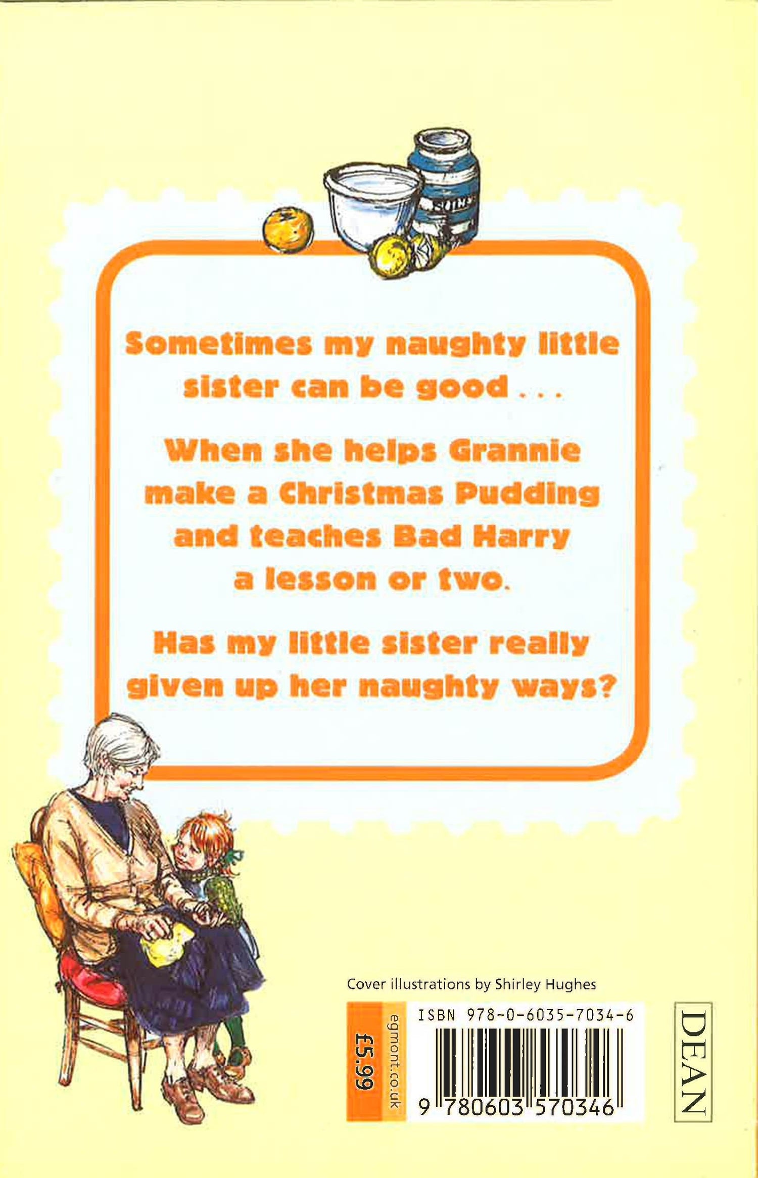 Sometimes my naughty little sister can be good... when she helps Grannie to make a Christmas Pudding and even teaches Bad Harry a lesson or two. Has my little sister given up her naughty ways?
