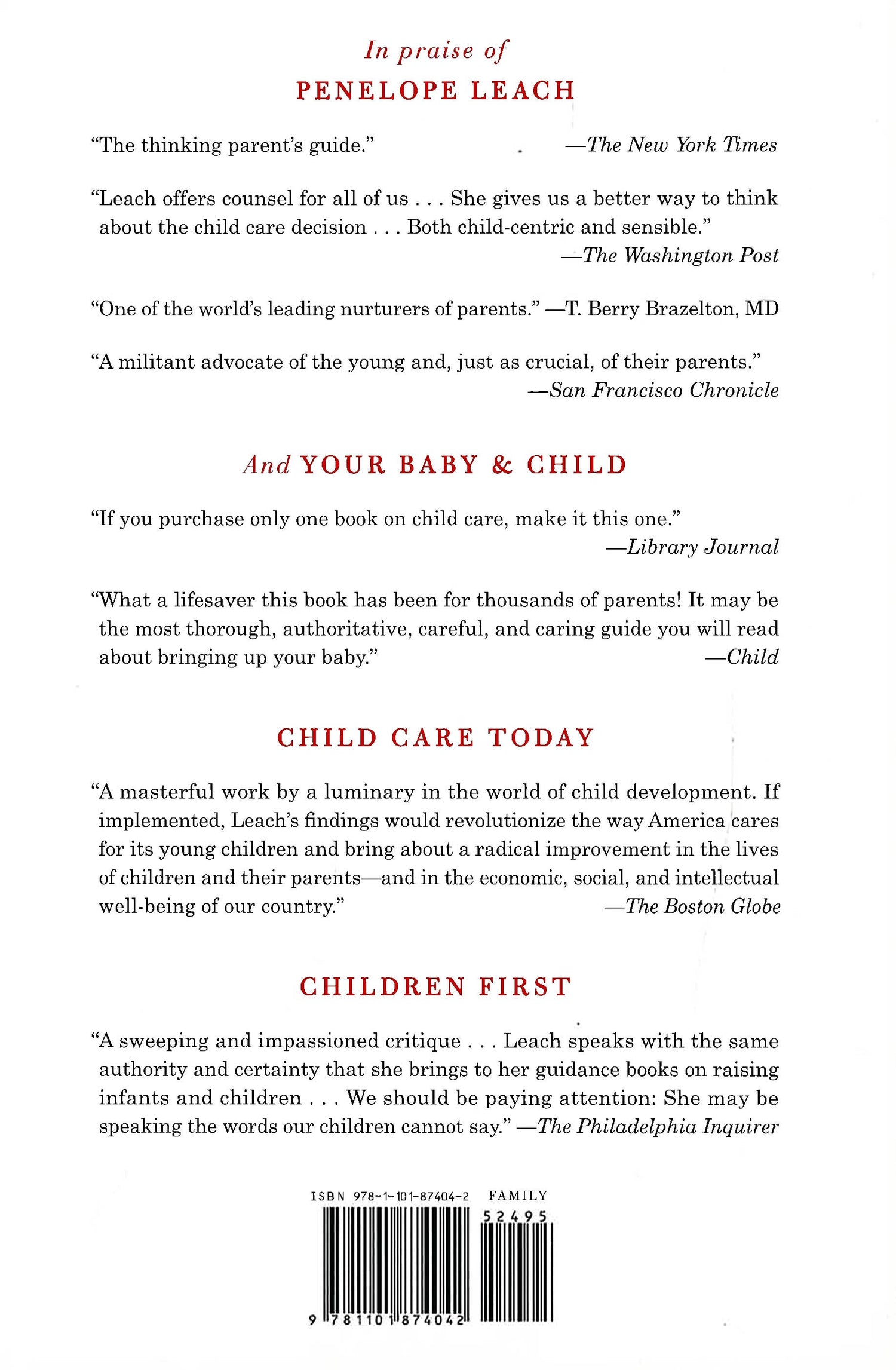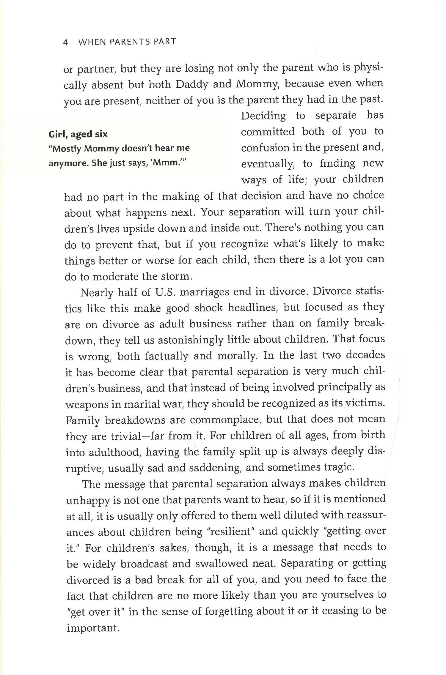 From the acclaimed, best-selling author of Your Baby & Child and one of the world's leading experts on child development and parenting, a practical, comprehensively researched guide to doing the best for your child during and after separation or divorce. Recent research clarifies why parents--fathers as much as mothers--are so crucial to children of all ages and how their separation can turn children's lives upside down. Drawing on the latest scientific findings, as well as on her many years of professional and personal work with children, Penelope Leach describes how parents can minimize the impact of separation and divorce on children through the six stages of a child's life, from infancy to adulthood. She helps parents find ways to continue being fathers and mothers when they are no longer husbands and wives. She explains recent studies that overturn numerous common assumptions, revealing, for example, that many standard custody arrangements can undermine young children's attachment to parents and in the case of infants even negatively affect their brain development; that unless infants and toddlers are already closely attached to both parents, regular overnights with the noncustodial parent may be damaging; and that dividing a child's time equally between the parents may be "fair" to them but seldom is best for the child. And, throughout, Leach grounds her approach with anecdotal evidence presented in the voices of children and parents themselves. Leach's child-centered advice, profoundly thoughtful and thorough, tackles the issues from every angle--emotional, scientific, psychological, practical, legal--covering everything from access, custody, and financial considerations to managing separate sets of technology in two houses. Above all she is insistent that for the sake of their future development, the needs of children must be put first. She is persuasively clear that mutual parenting, while seldom easy, is the best way forward for both the parents and the children.