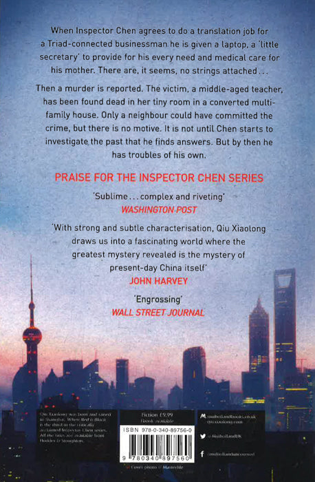 Now a BBC Radio 4 Drama Series.When Inspector Chen Cao agrees to do a translation job for a Triad-connected businessman he is given a laptop, a 'little secretary' to provide for his every need, medical care for his mother. There are, it seems, no strings attached . . . Then a murder is reported: Chen is loath to shorten his working holiday, so Sergeant Yu is forced to take charge of the investigation. The victim, a middle-aged teacher, has been found dead in her tiny room in a converted multi-family house. Only a neighbour could have committed the crime, but there is no motive. It is only when Chen returns and starts to investigate the past that he finds answers. But by then he has troubles of his own.