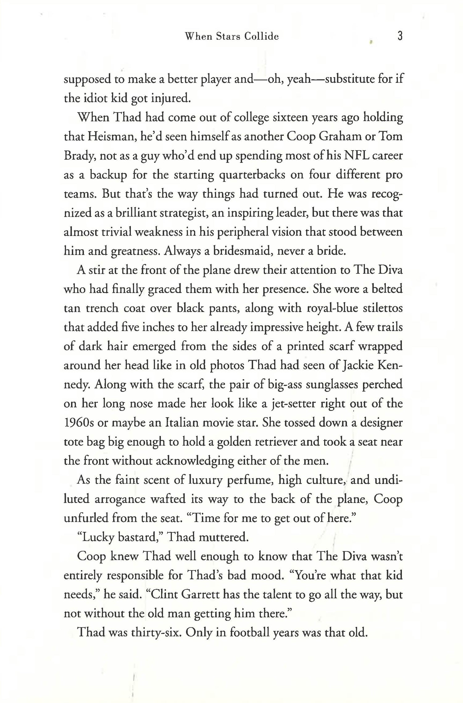 Thaddeus Walker Bowman Owens, the backup quarterback for the Chicago Stars, is a team player, talented sideline coach, occasional male underwear model, and a man with a low tolerance for Divas.