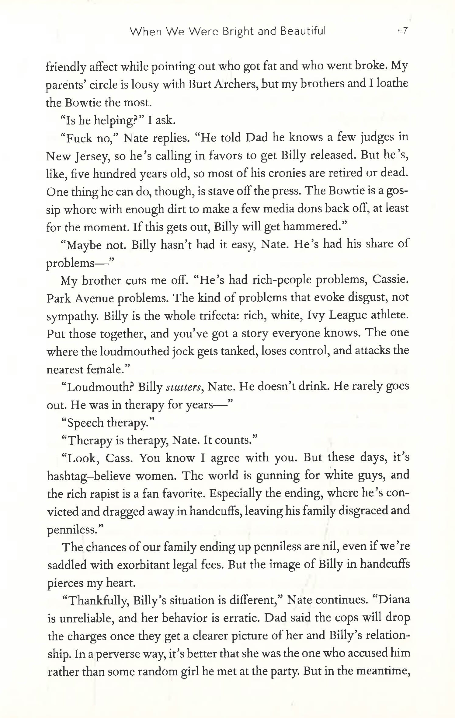 Lightning-paced and psychologically astute as it rockets toward an explosive ending, When We Were Bright and Beautiful is a dazzling novel that asks: who will pay the price when the truth is revealed?