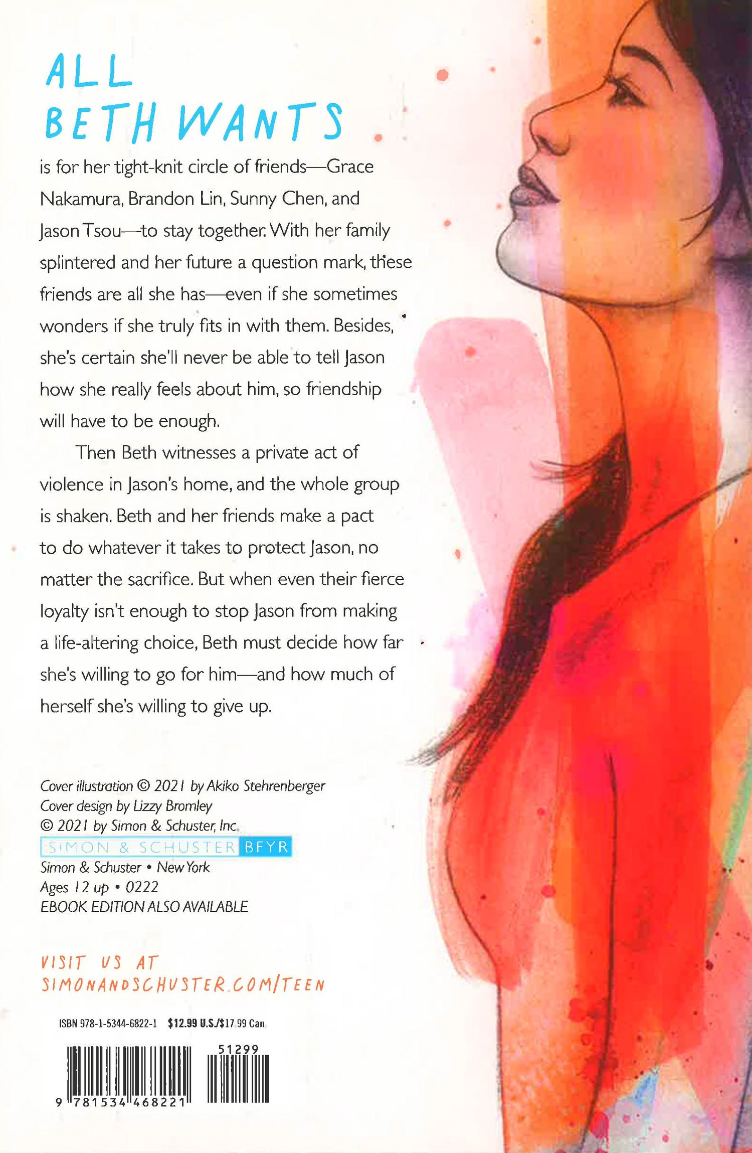 All Beth wants is for her tight-knit circle of friends—Grace Nakamura, Brandon Lin, Sunny Chen, and Jason Tsou—to stay together. With her family splintered and her future a question mark, these friends are all she has—even if she sometimes wonders if she truly fits in with them. Besides, she’s certain she’ll never be able to tell Jason how she really feels about him, so friendship will have to be enough.