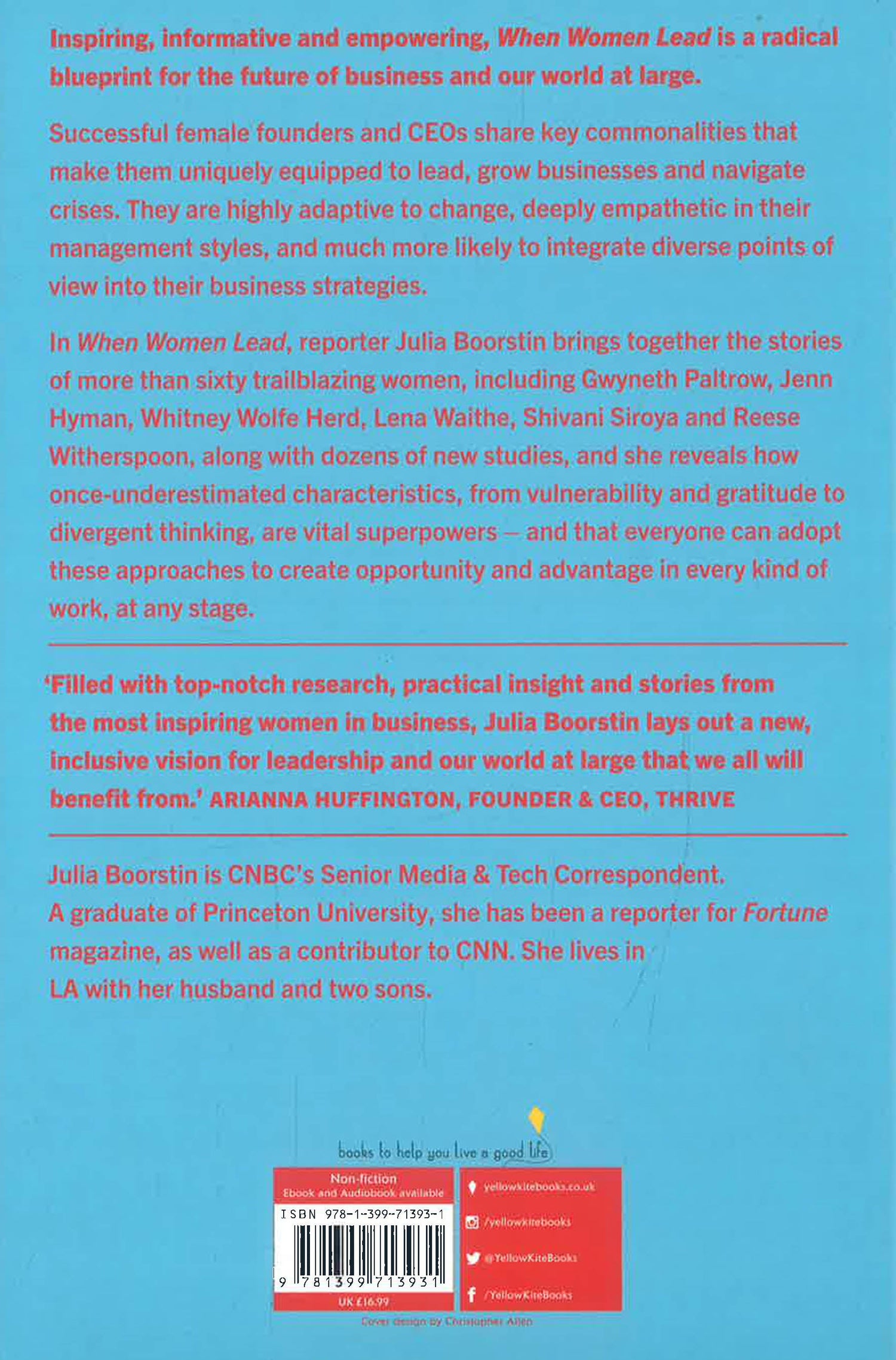 Now, in When Women Lead, Boorstin brings together the stories of over sixty of those female CEOs and leaders, and dozens of new studies. Her combination of narrative and research reveals how once-underestimated characteristics, from vulnerability and gratitude to divergent thinking, can be vital superpowers - and that anyone can work these approaches to their advantage.