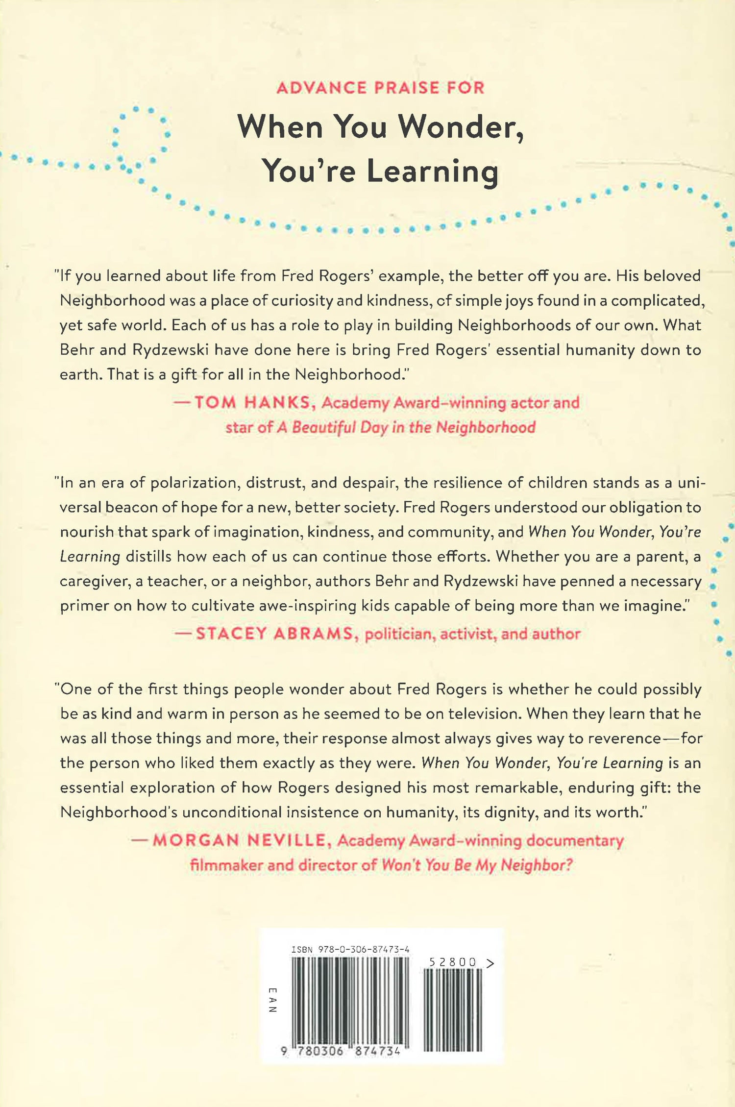 Playful and practical, When You Wonder, You're Learning introduces a new generation of families to the lessons of Mister Rogers' Neighborhood. By exploring the science behind the iconic television program, the book reveals what Fred Rogers called the “tools for learning”: skills and mindsets that scientists now consider essential. These tools—curiosity, creativity, collaboration, and more—have been shown to boost everything from academic learning to children’s well-being, and they benefit kids of every background and age. They cost next to nothing to develop, and they hinge on the very things that make life worthwhile: self-acceptance; close, loving relationships; and a deep regard for one’s neighbor.