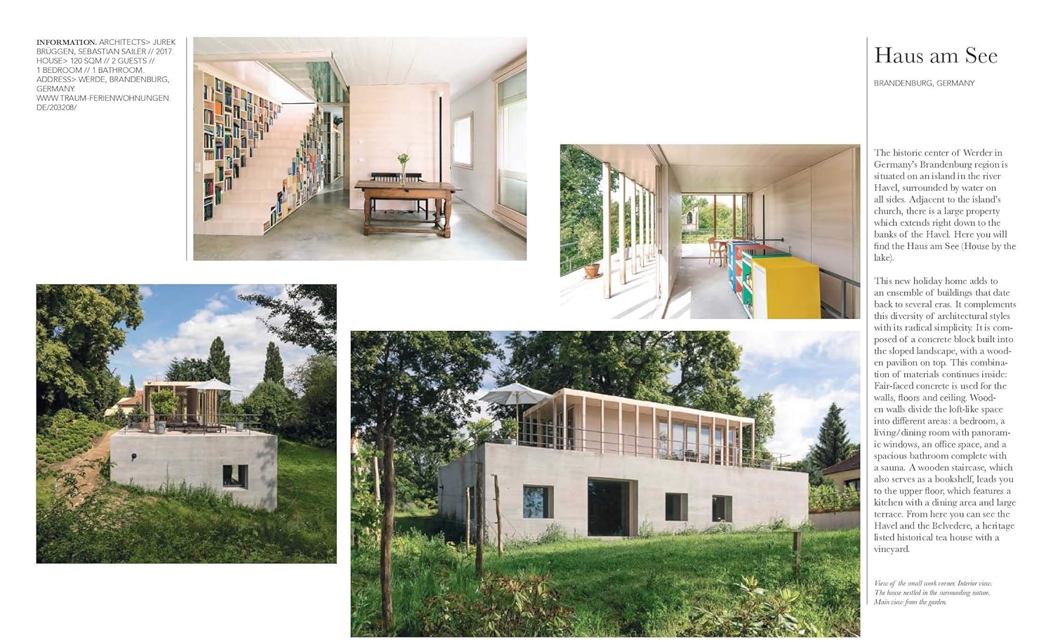 Germany is one of the most popular destinations in the world: on over 350,000 square kilometers the traveler is offered wonderful forests, amazing beaches, spectacular mountains, romantic lakes, exciting cities, beautiful villages, as well as an indescribably wide choice of cultural highlights. For this reason, the third volume of the series 'Where Architects Stay" is dedicated to the territory in the center of Europe between Flensburg, Görlitz, Passau, Freibung, Saarbrücken and Aachen. This guide to architecture and accommodation presents outstanding lodgings for design lovers and individual travelers. Each is distinguished by the highest stylistic quality, personal touch, originality and passion for detail. It immediately show that all these travel jewels have been conceived as favorite projects by the respective designers and already at first glance one can feel their careful and thoughtful composition.