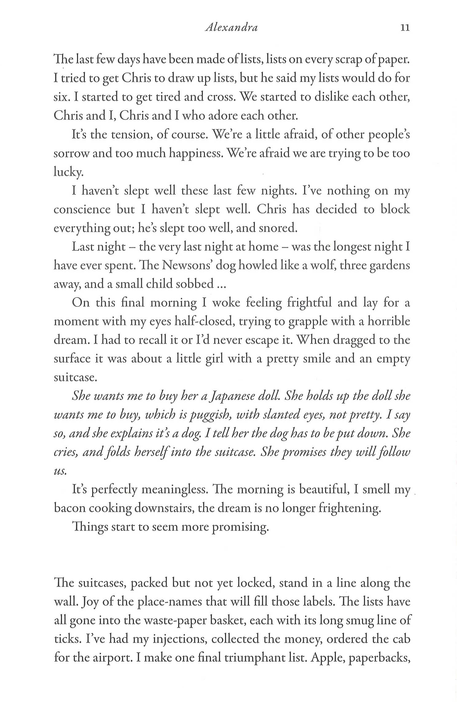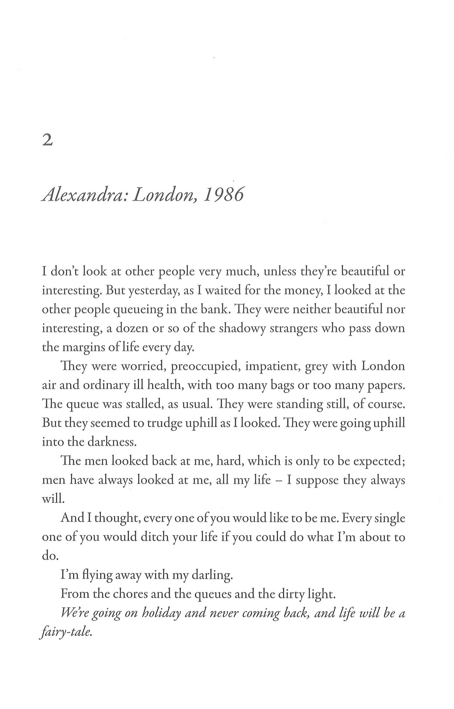 Christopher and Alexandra's passion for one another raises eyebrows and invites envy. This beautiful, blinkered couple do the unthinkable and run away from home, abandoning their two teenage children. This is a story of obsessive love and a testimony to the bonds that tie us to our past, regardless of distance or time travelled.