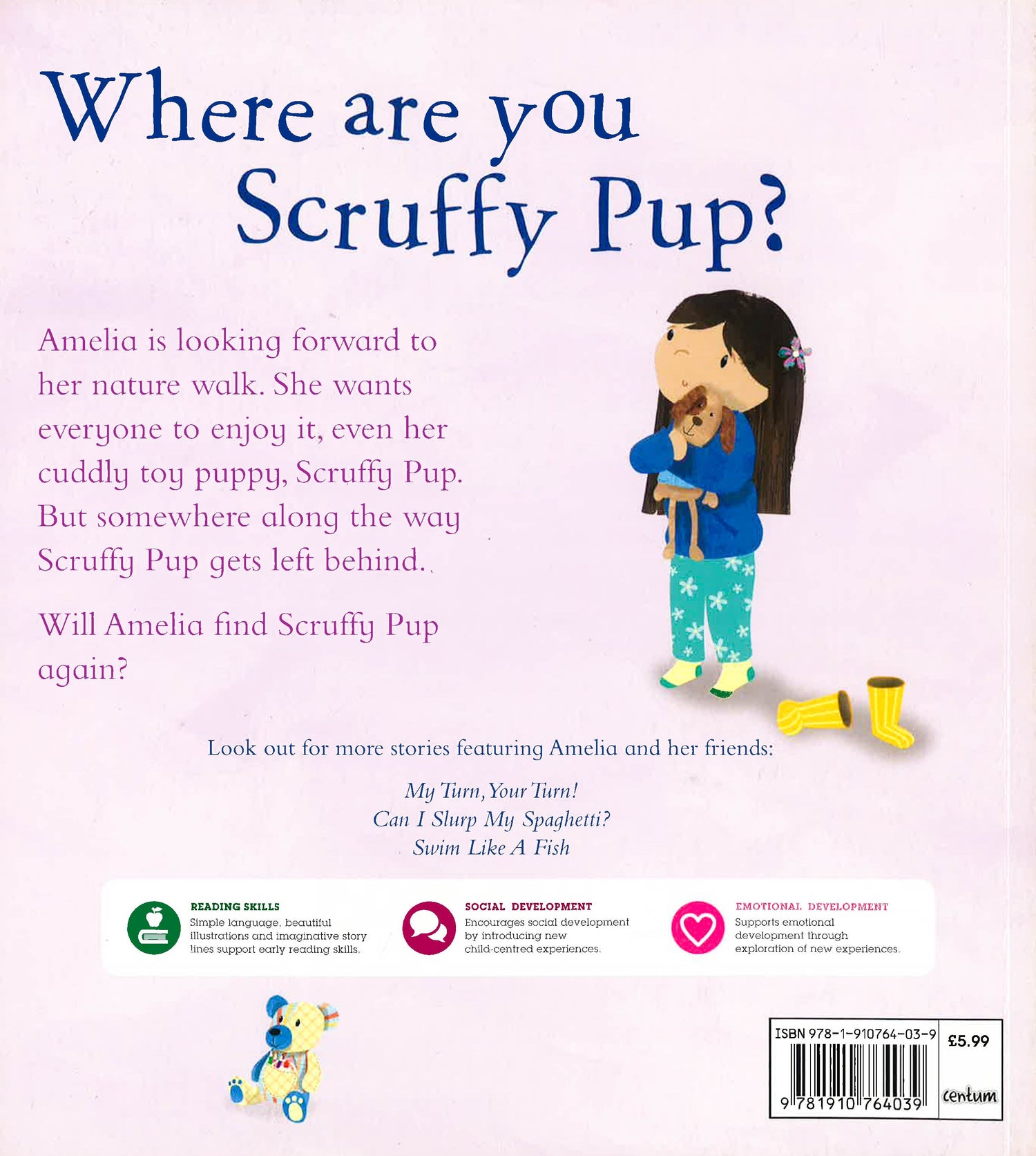 Amelia is looking forward to her nature walk. She wants everyone to enjoy it, even her cuddly toy puppy, Scruffy Pup.But somewhere along the way, Scruffy Pup gets left behind.Will Amelia find Scruffy Pup again?