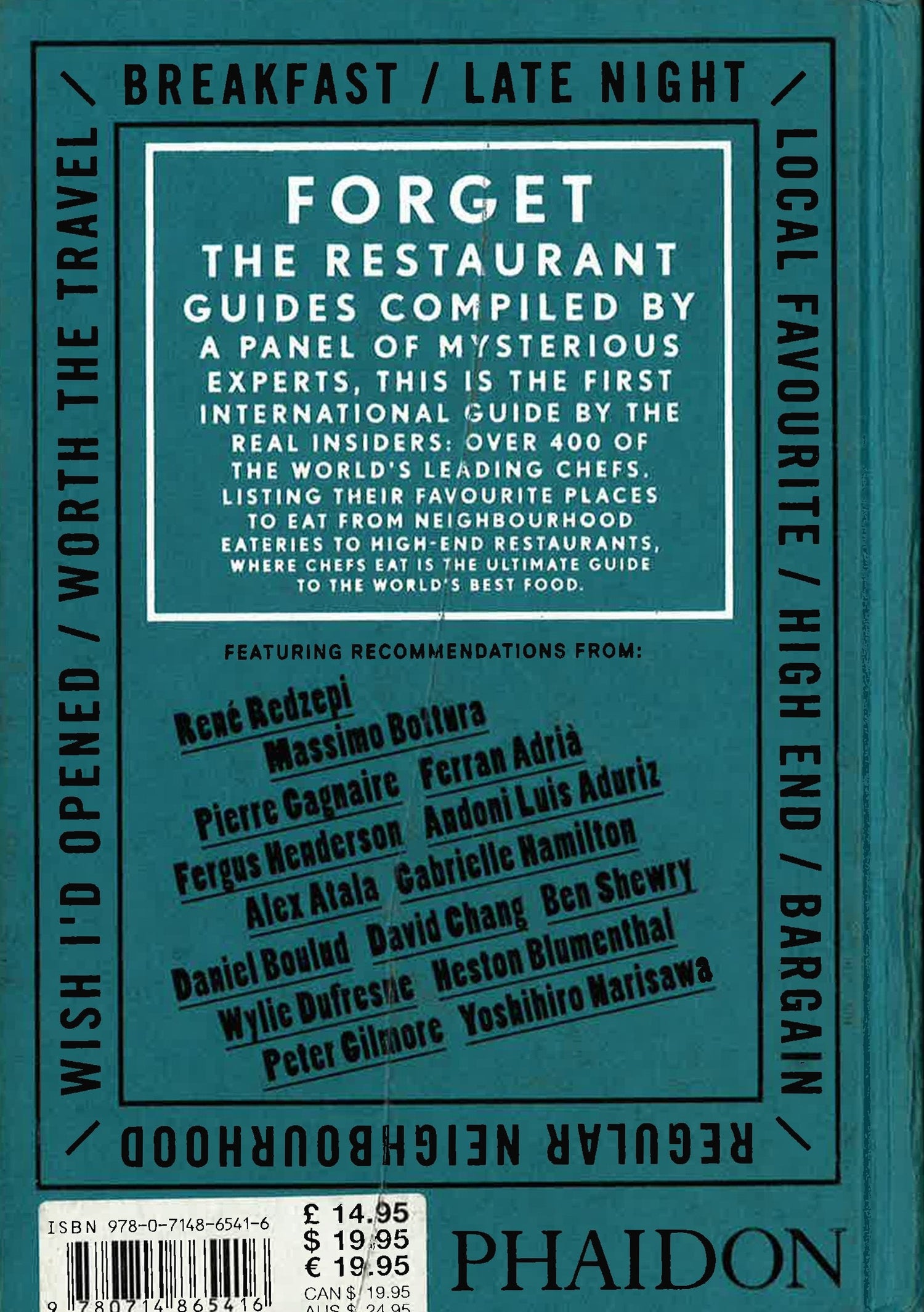 Recommending a minimum of three restaurants each, today's hottest food talent reveal their favourite breakfast places; where they like to eat late at night; which restaurant they wish they'd opened and more. Whether it's their favourite sushi bar when traveling or where they eat locally on a rare night off all 2300 chef recommendations will be based on the food alone. With entertaining reviews, stunning maps for reference and an easy-to-use geographical system of organisation, Where Chefs Eat will appeal to all chef-conscious restaurant goers and food lovers worldwide. *This book may have remainder mark.