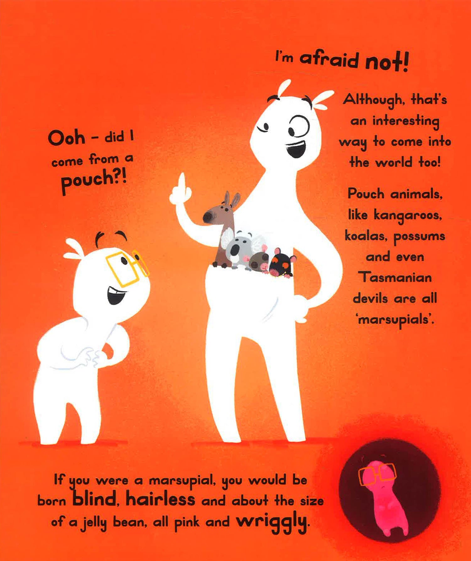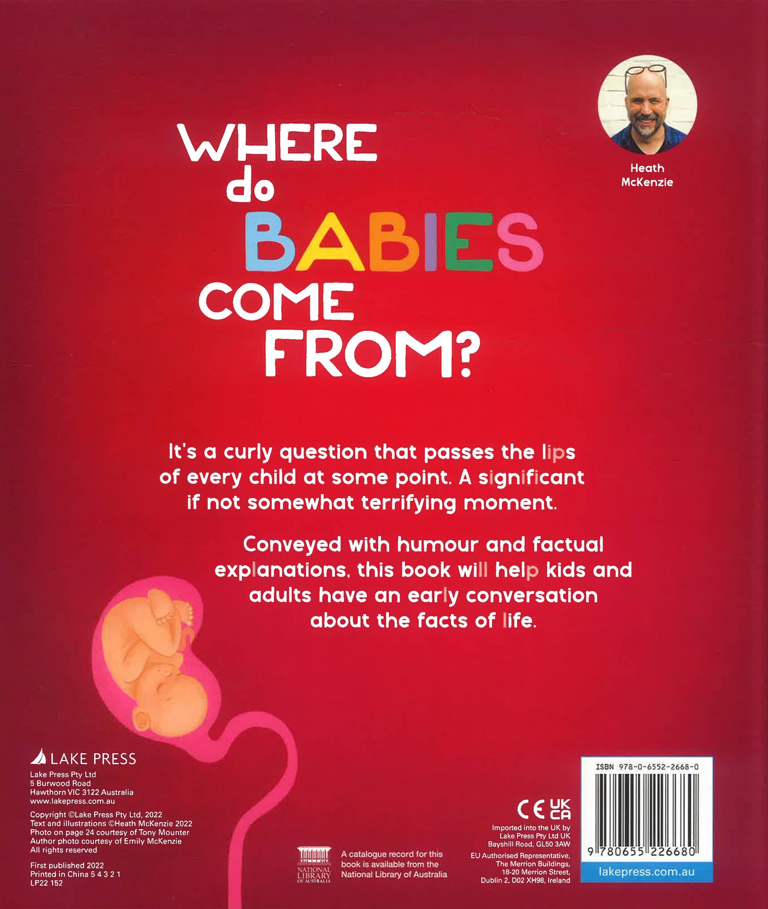 Do babies come from an egg, like a chicken? Or do they come from a pouch, like a kangaroo? What about from a seed? Like a plant? Heath McKenzie brings laughter and fun to the science of human biology. Taking as a launching point one of the trickiest questions of them all, Heath's illustrations and humour make an entertaining read aloud for all. This picture book is destined to become another firm favourite with kids and parents alike.