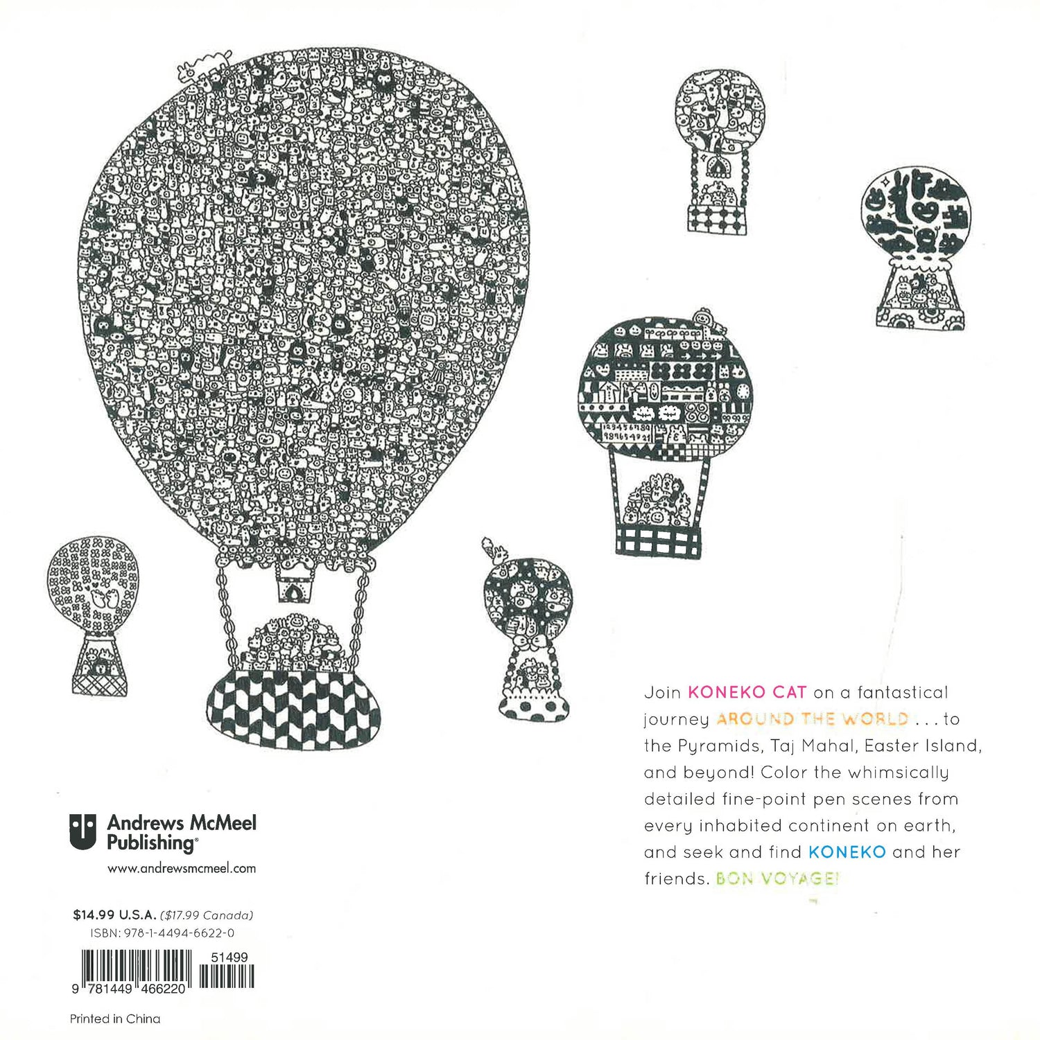 Join Koneko Cat on a fantastical journey around the world...to the Pyramids, Taj Mahal, Easter Island, the Coliseum, and beyond! Color the whimsically detailed fine-point pen pictures of scenes from every inhabited continent on earth, and seek and find Koneko and her friends. Bon Voyage!