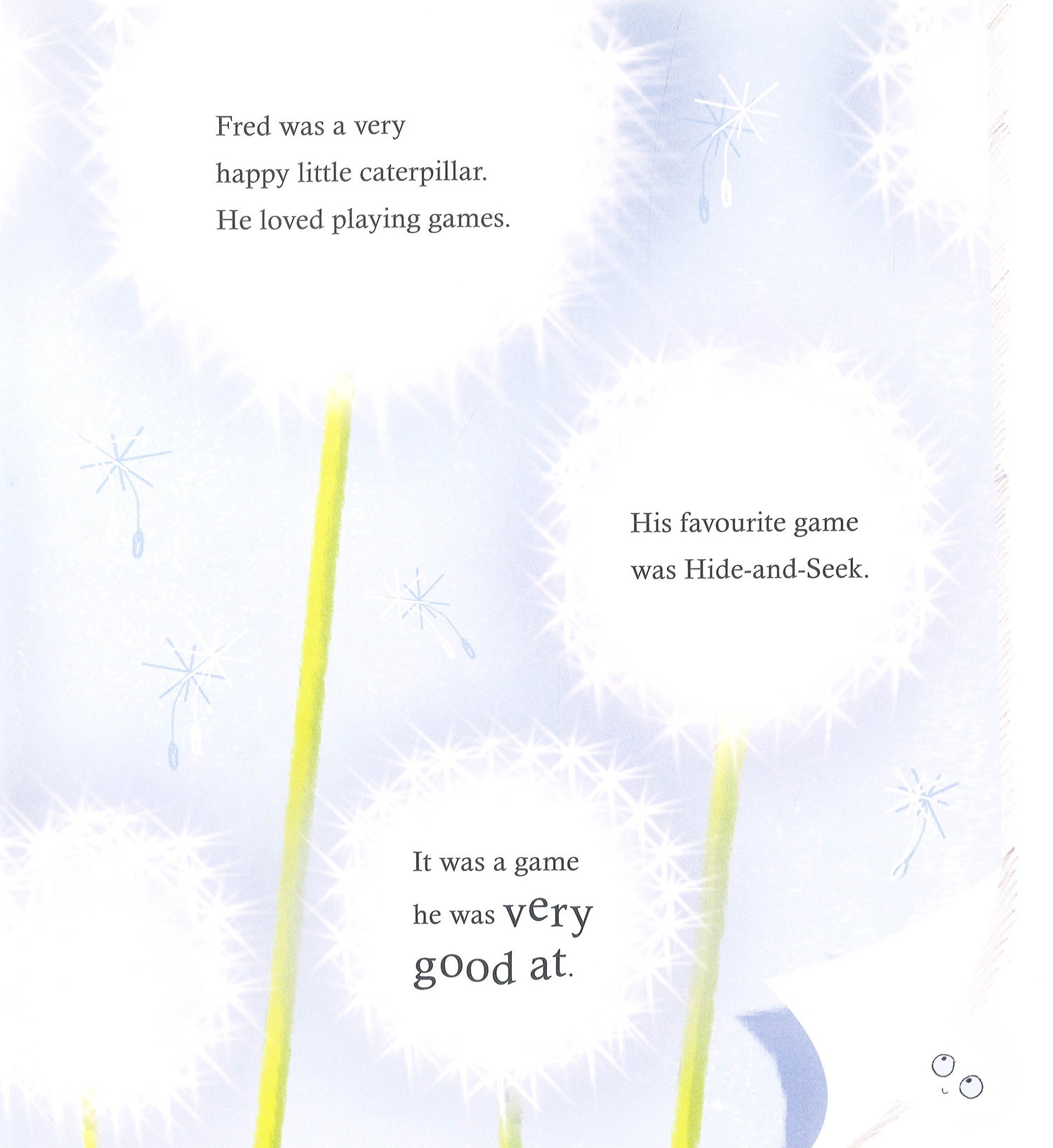 Join in this original and hilarious game of picture book hide-and-seek starring a hungry crow and a fluffy white caterpillar called Fred. Hey, YOU! Yes, YOU reading this! I'm Gerald the crow and I'm looking for a lovely, fluffy white caterpillar called Fred. Have you seen him? I want him for my lunch! You haven't? Are you sure? Then ...WHERE IS FRED? Follow Fred the fluffy white caterpillar as he outwits Gerald the Crow, in a brilliant new picture book about playing hide-and-seek theme. Fun to read aloud and perfect for sharing, this picture book by Edward Hardy, author of Martha, No!, and Ali Pye will keep children and parents entertained again and again.