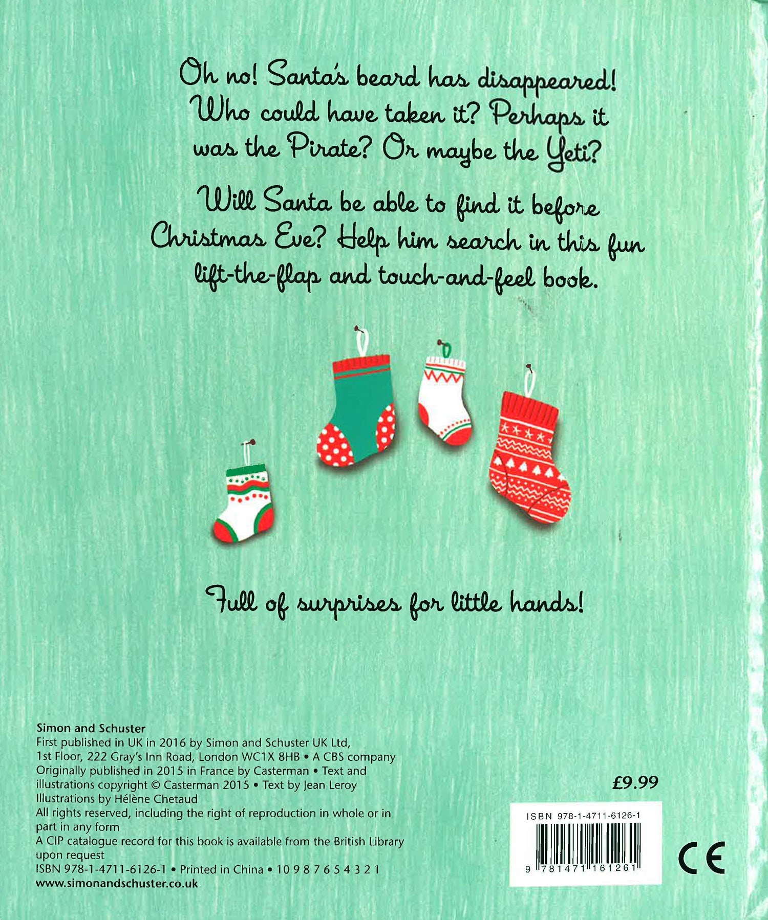 Santa's lost his beard and he can't find it anywhere! Who could have it? Has the pirate taken it? Or maybe it was the yeti? Find out what's happened to Santa's beard in this bold, bright and fun lift the flap, touch and feel book, and help Santa get ready for Christmas!