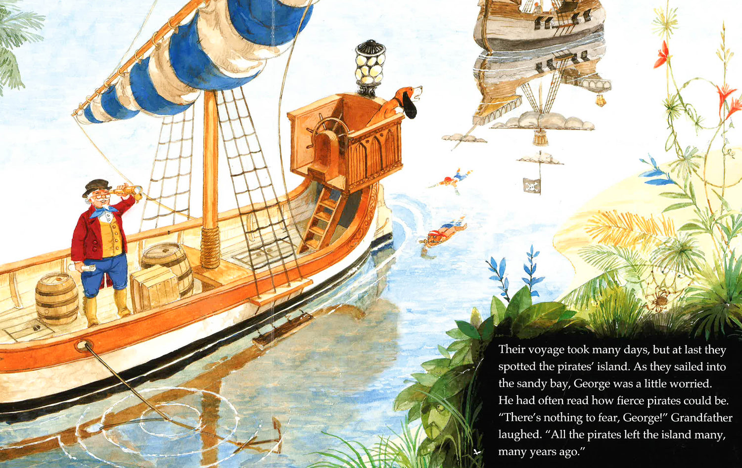 Watch out! Pirates are roaming the pages of this fun-filled follow-up to the popularWhere's the Dragon? and Where's the Dinosaur? Can you spot all of them? Grandfather, George, and Meg the dog have sailed to a deserted island to search for some missing treasure. Though Grandfather is oblivious, there are hordes of swashbuckling buccaneers following them! Each spread is embossed, encouraging little hands to seek out tactile spots as they count each pirate.