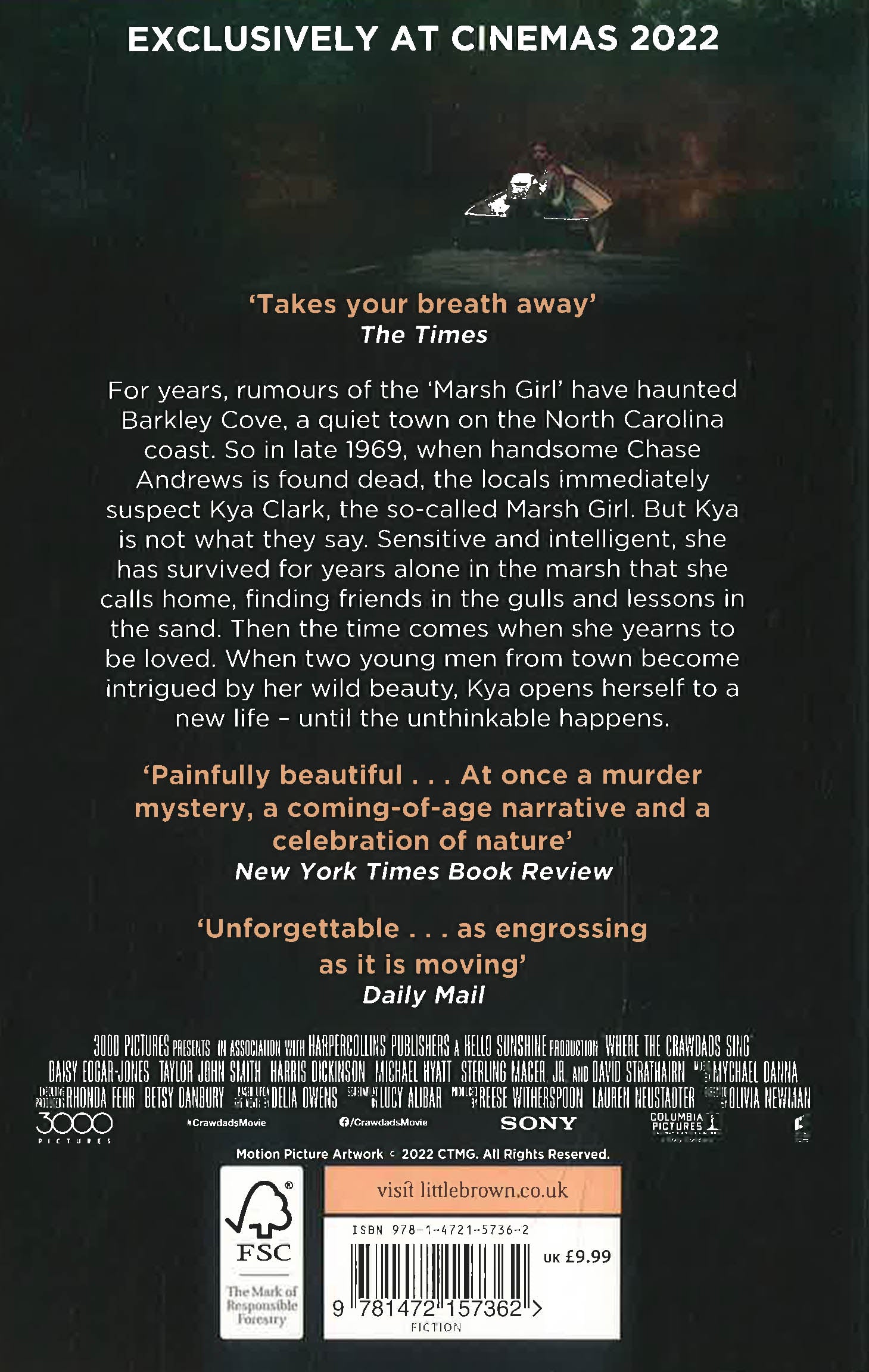 For years, rumours of the 'Marsh Girl' have haunted Barkley Cove, a quiet town on the North Carolina coast. So in late 1969, when handsome Chase Andrews is found dead, the locals immediately suspect Kya Clark, the so-called Marsh Girl. But Kya is not what they say. Sensitive and intelligent, she has survived for years alone in the marsh that she calls home, finding friends in the gulls and lessons in the sand. Then the time comes when she yearns to be touched and loved. When two young men from town become intrigued by her wild beauty, Kya opens herself to a new life - until the unthinkable happens.