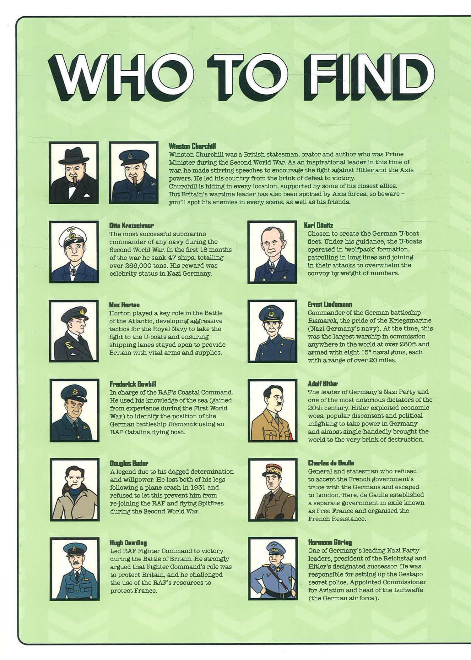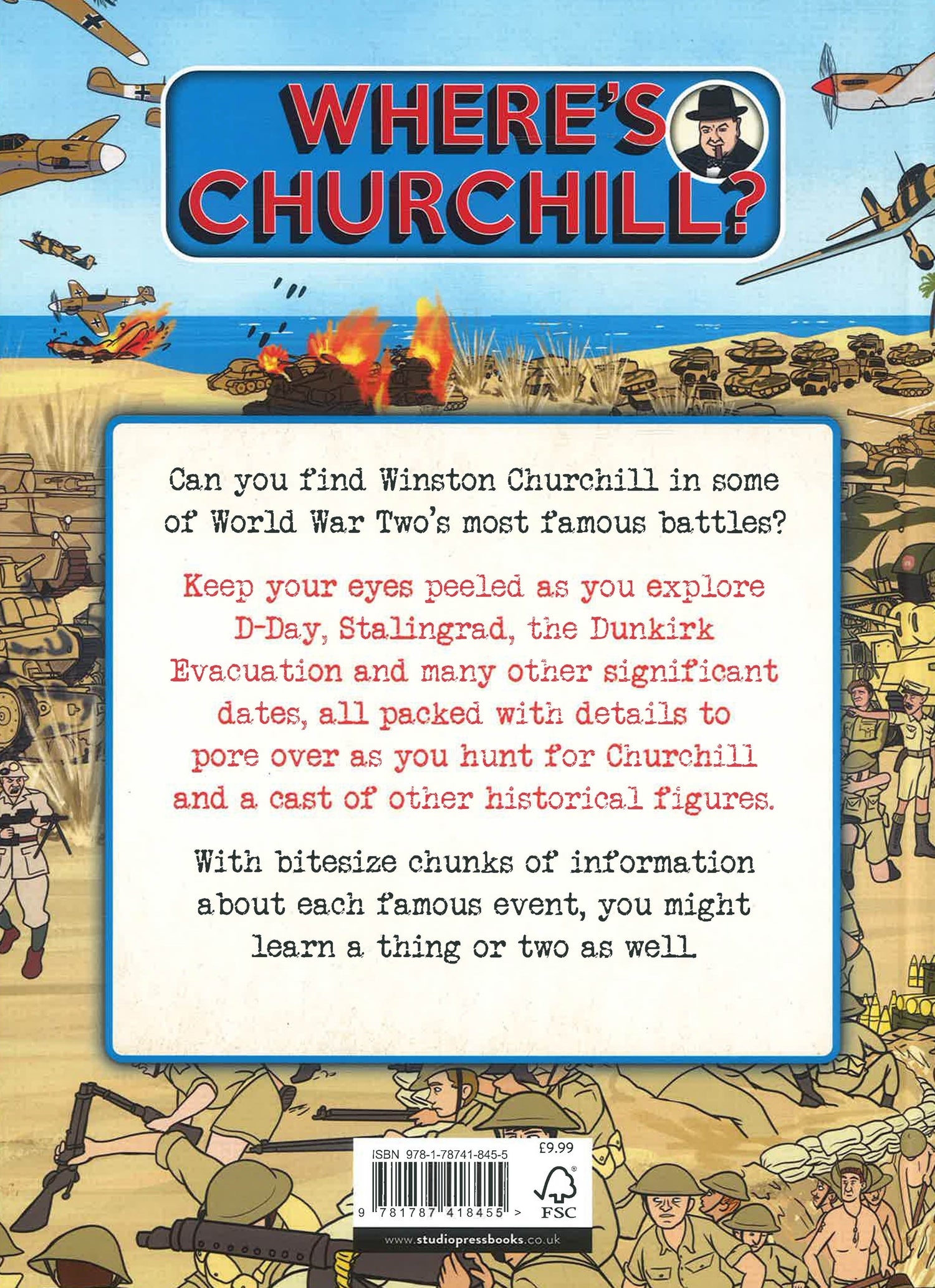 Where's Churchill is a collection of search and find scenes themed around World War II's most famous battles and events. It includes D-Day, Stalingrad, The Battle of Britain, Pearl Harbour and many other significant events, all packed with details to pore over as you hunt for Churchill and a cast of other historical figures.