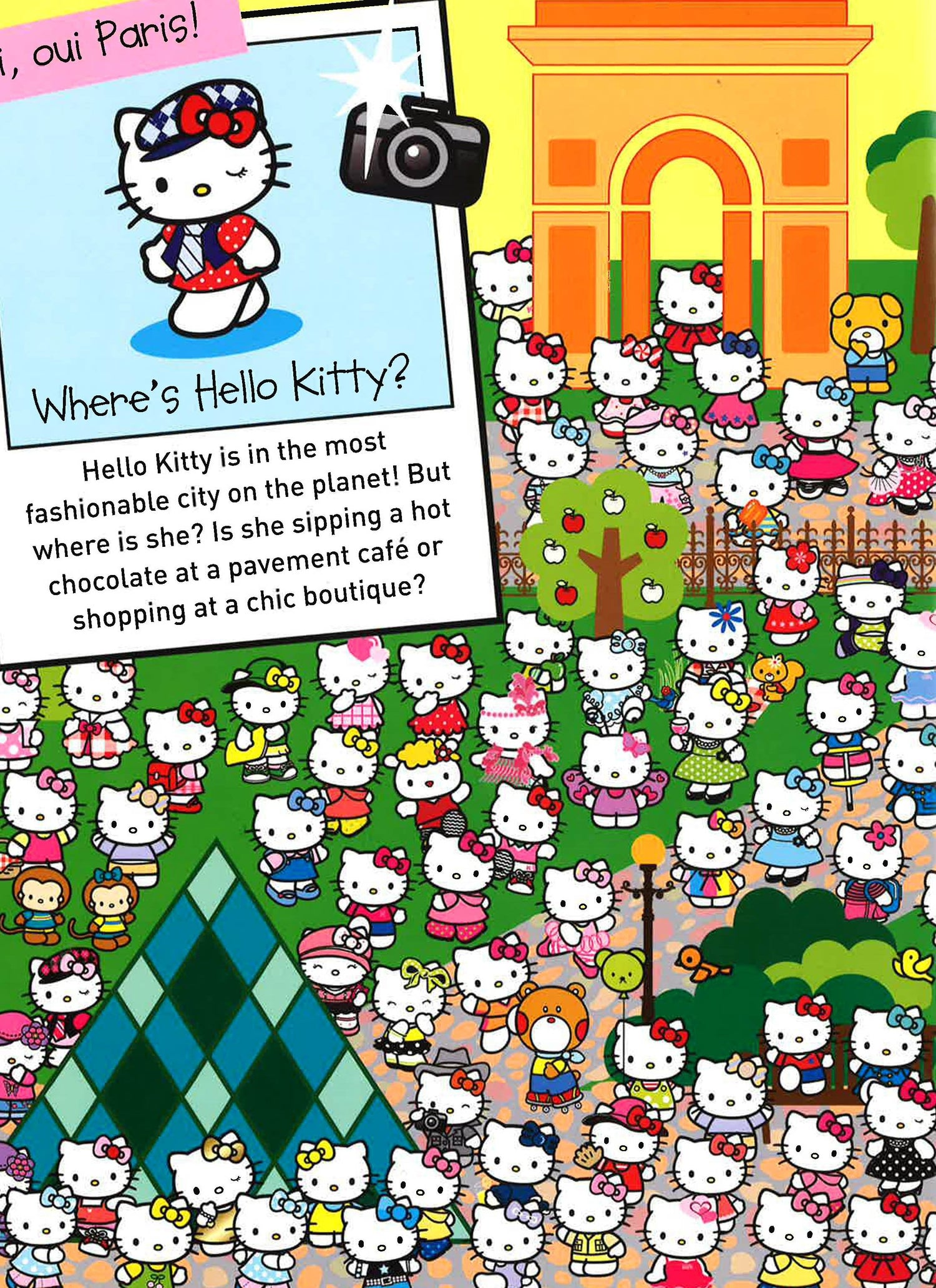 Hello Kitty is visiting London, Paris and New York but there are lots of lookalikes. Your task is to find the real Hello Kitty in every scene. It's harder than you think. Hours of entertainment will be had as you scan the pages looking for Hello Kitty and her friends!