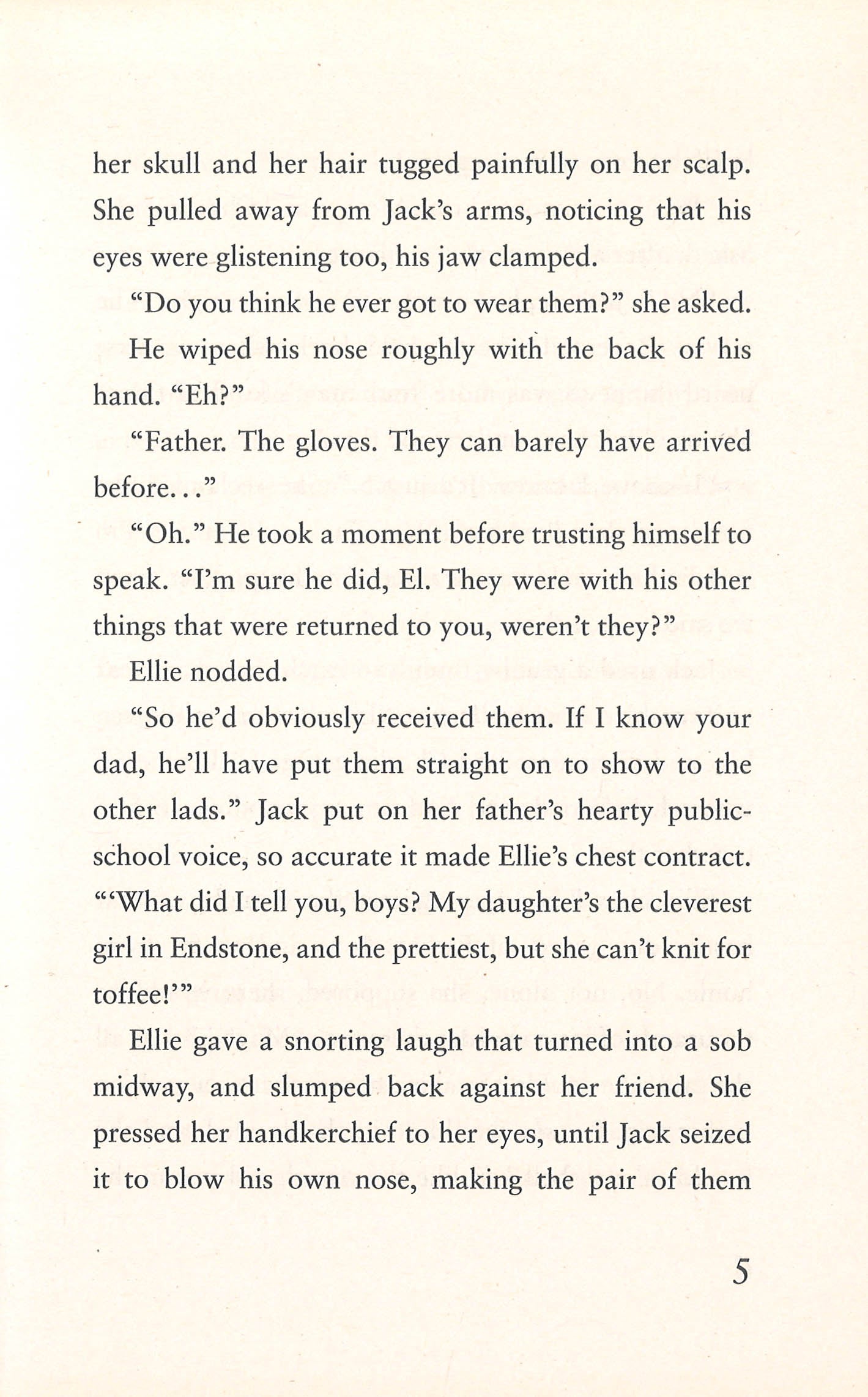 The second book in the personal and moving coming-of-age story setagainst the backdrop of the First World War. August 1915. Ellie'slife has completely changed in the year since war broke out. She'sbeen forced to leave school to work in the factory, and muchworse, her family has received devastating news from the trenches.At least she has her best friend Jack. But then Jack runs offto war. Will Ellie ever see him again?