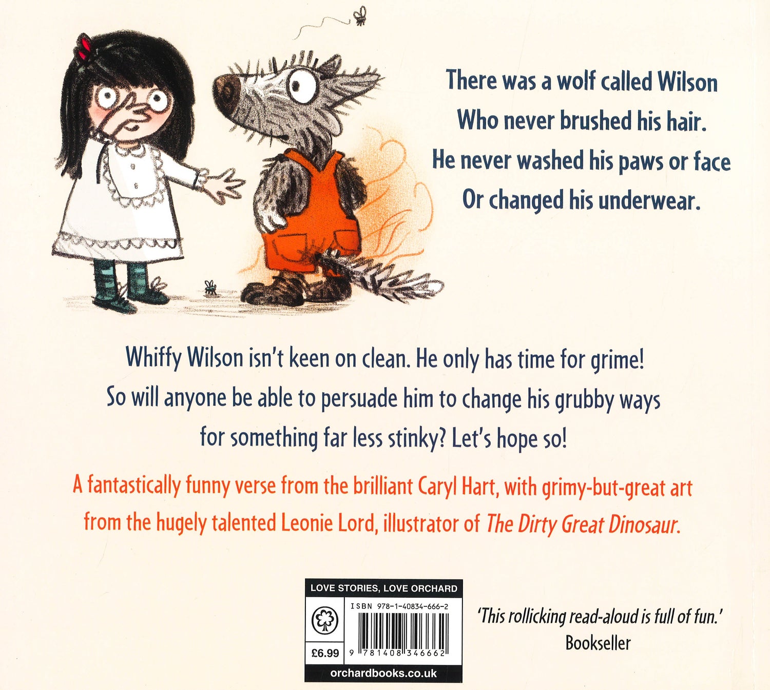 Whiffy Wilson isn't keen on clean—he only has time for grime! A wonderful lesson on why bath times are best. There was a wolf called Wilson who never brushed his hair. He never washed his paws or face, or changed his underwear. Will anyone be able to persuade Whiffy Wilson to change his gross ways for something far less stinky? Pee-ew! Let's hope so! A fantastically funny verse from the brilliant Caryl Hart, with grubby-but-great illustrations from the hugely talented illustrator of The Dirty Great Dinosaur.