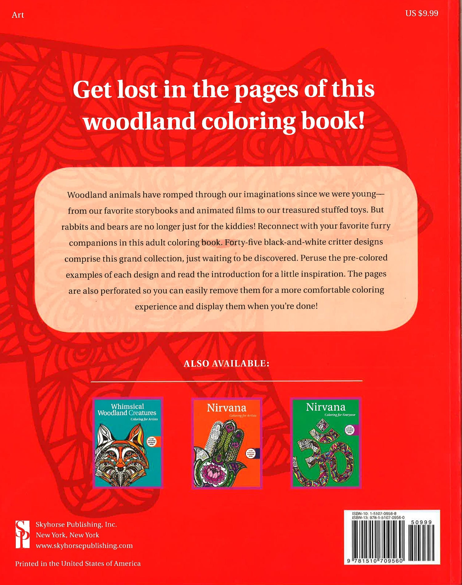 Woodland animals have romped through our imaginations since we were young-from our favorite story books and animated films to our treasured stuffed toys. But rabbits and bears are no longer just for the kiddies! Reconnect with your favorite furry companions in this adult coloring book. Pages of critters await you in this grand collection of designs just waiting to be discovered. Whimsical Woodland Creatures: Coloring for Everyone brings the wild animal kingdom to your colored pencil tip! Forty-five black-and-white designs are accompanied by forty-five coordinating pre-colored versions to inspire your creations. Wolves and bears bide their time while owls, butterflies, and deer linger over these pages, waiting for your imagination to bring them to life. The pages are perforated, so each masterpiece can be removed and placed on display for all the world to admire! In this book, you'll find: An introduction to revive your love of the animals we all adore and admire Forty-five original black-and-white designs for you to color on single-sided perforated pages Forty-five full-color versions of the designs to inspire and guide you while coloring These creatures are guaranteed to provide hours of adventurous creativity-whether you're getting comfy indoors or taking a break in the great outdoors. The possibilities are endless as you apply your own imaginative palette to these delightful designs. Gather your colored pencils and go wild!