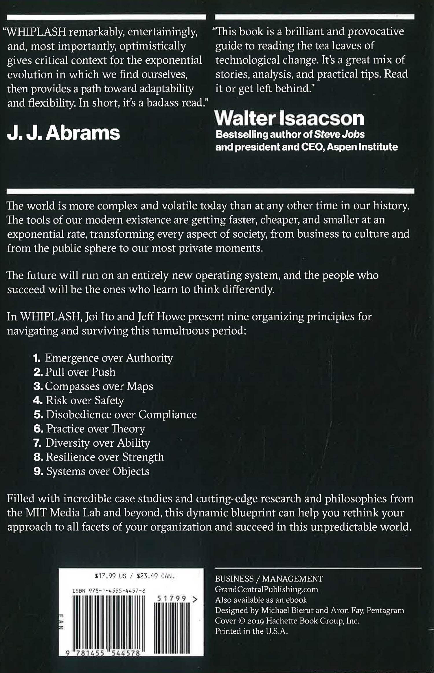 In WHIPLASH, Joi Ito and Jeff Howe distill that logic into nine organizing principles for navigating and surviving this tumultuous period: