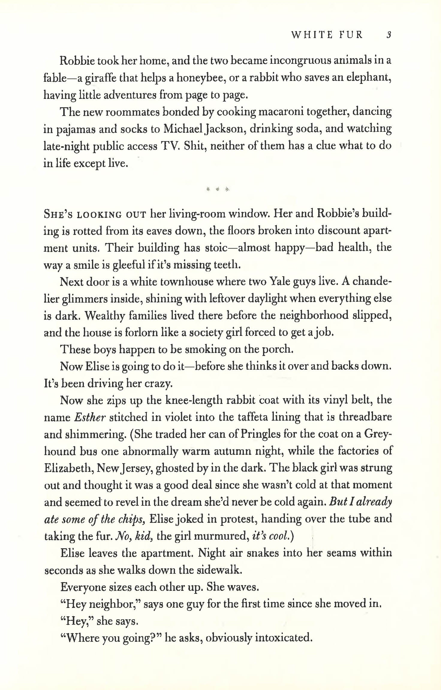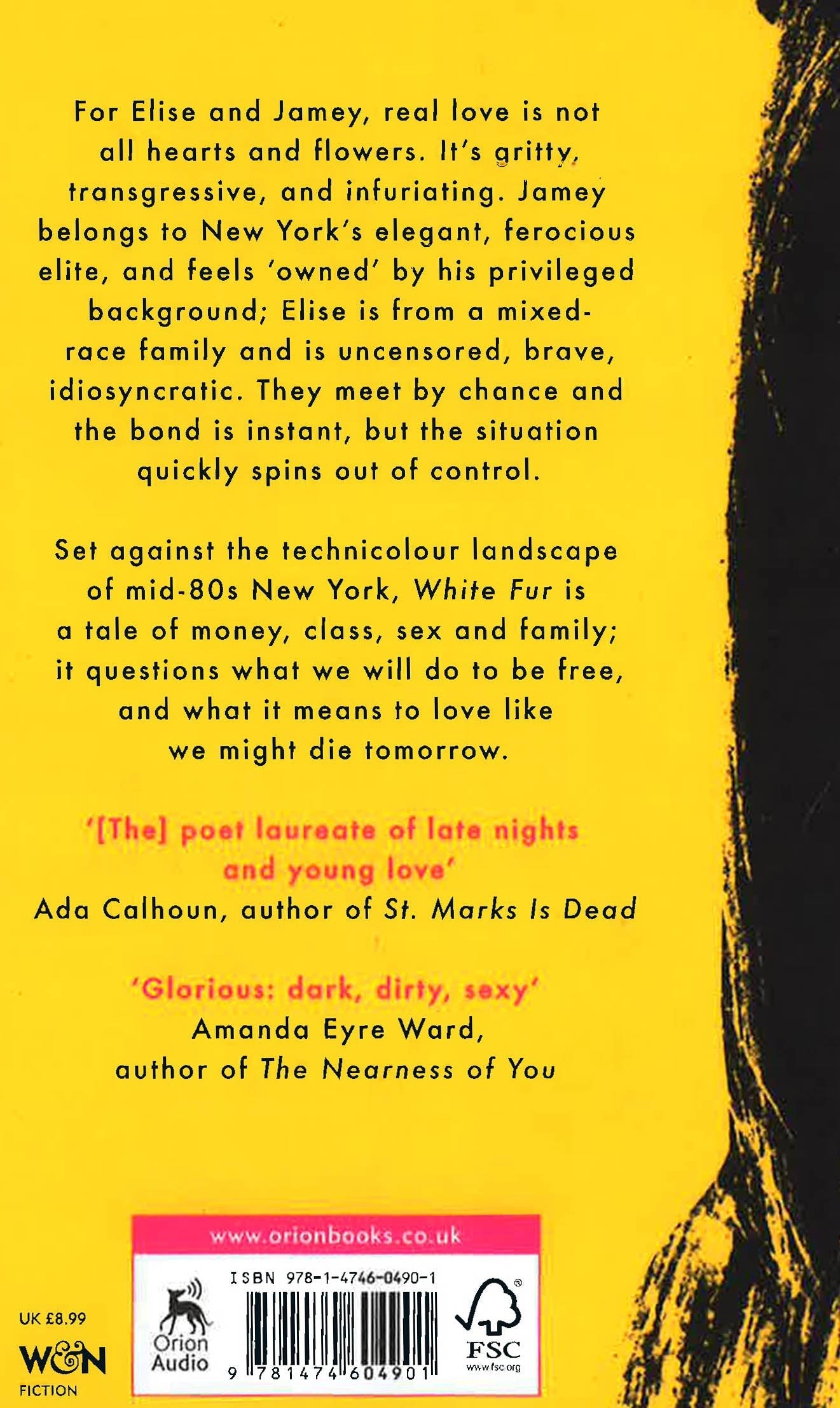 Set against the technicolour landscape of mid-80s New York, White Fur is a tale of money, class, sex and family; it questions what we will do to be free, and what it means to love like we might die tomorrow.