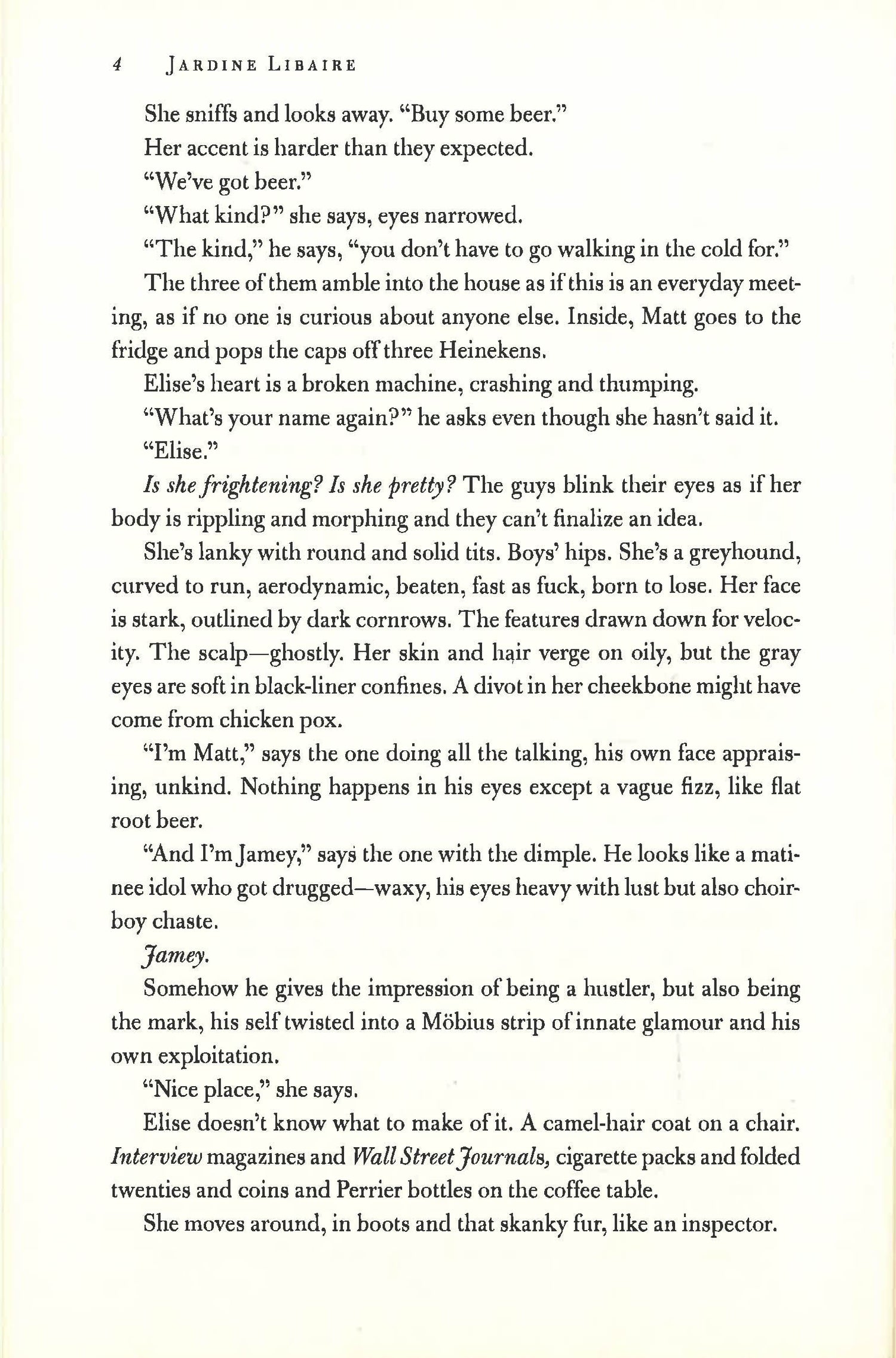 For Elise and Jamey, real love is not all hearts and flowers. It's gritty, transgressive, and infuriating. Jamey belongs to New York's elegant, ferocious elite, and feels 'owned' by his privileged background; Elise is from a mixed-race family and is uncensored, brave, idiosyncratic. They meet by chance and the bond is instant, but the situation quickly spins out of control.