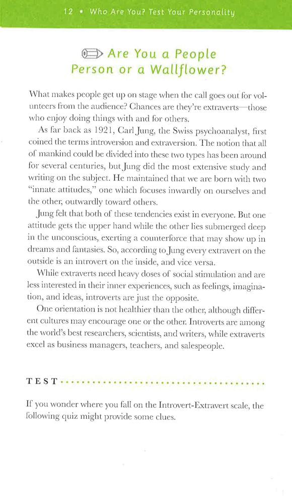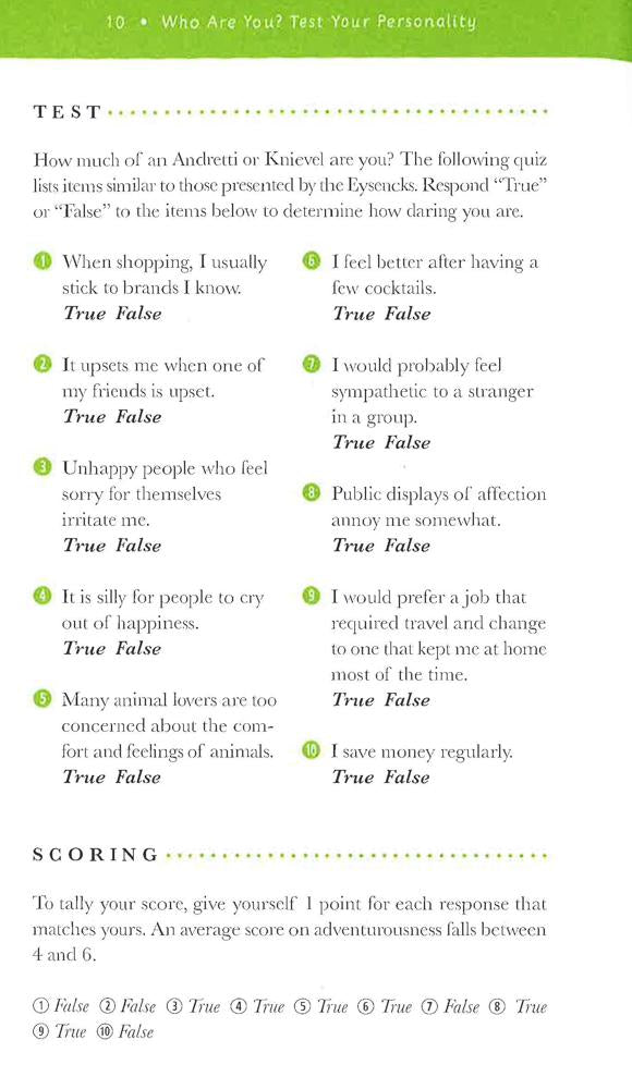 Attractive, take-anywhere, write-in quiz book that offers a daily dose of self-discovery! Who Are You? Test Your Personality is perfect for a handbag, briefcase, or knapsack! This entertaining and enlightening quiz book is great to have on hand anytime and anywhere, be it a long commute, a waiting room, or an evening at home. Who Are You? Test Your Personality is a collection of 40 tests designed to answer who you are, how you got that way, and what, if anything, you can or should do to change. Each quiz can be taken in just a few minutes and is easily scored. With a fun, modern cloth cover, elastic closure and overall great package you will want to show off this clever quiz book wherever you go!