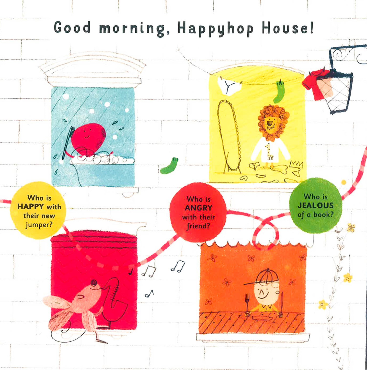 Everyone in Happyhop House experiences lots of feelings during their day. Can you spot who is happy to be playing paper aeroplanes? Who is sad that the last slice of cake has gone? Who is scared of the dark? At age 2, children enter a crucial stage in their development by starting to form friendships. In this fun, interactive question-and-answer book, young readers can look carefully at the pictures to work out who's feeling what, learning how to understand 12 key emotions and recognise them in others.