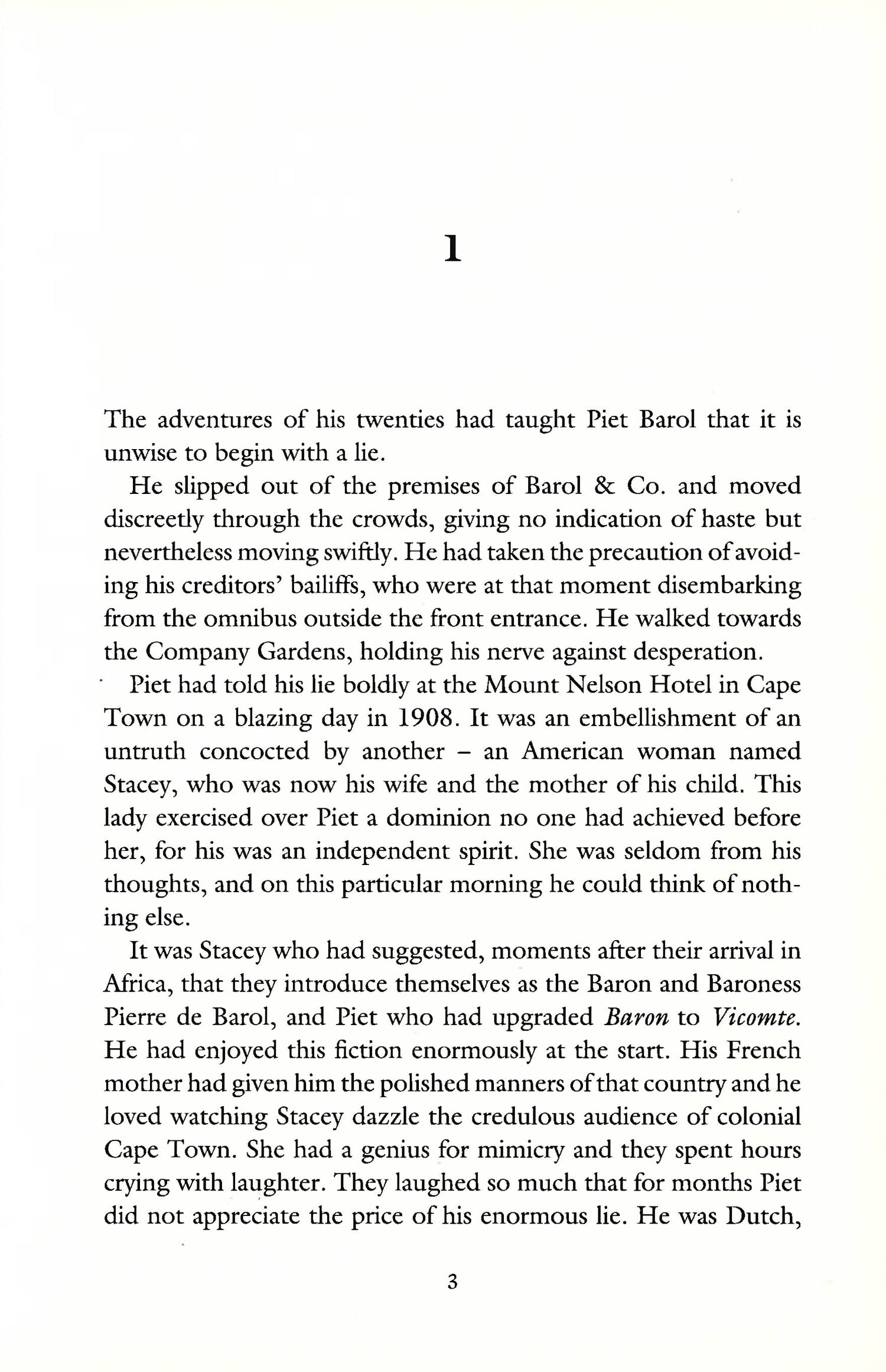 The Natives Land Act has just abolished property rights for the majority of black South Africans, and whole families have been ripped apart. As Piet's charm, charisma and appetite for risk lead him far beyond the safety of the privileged white world, he does not comprehend the enormous price of the lies he has told, nor where they will lead him . . .