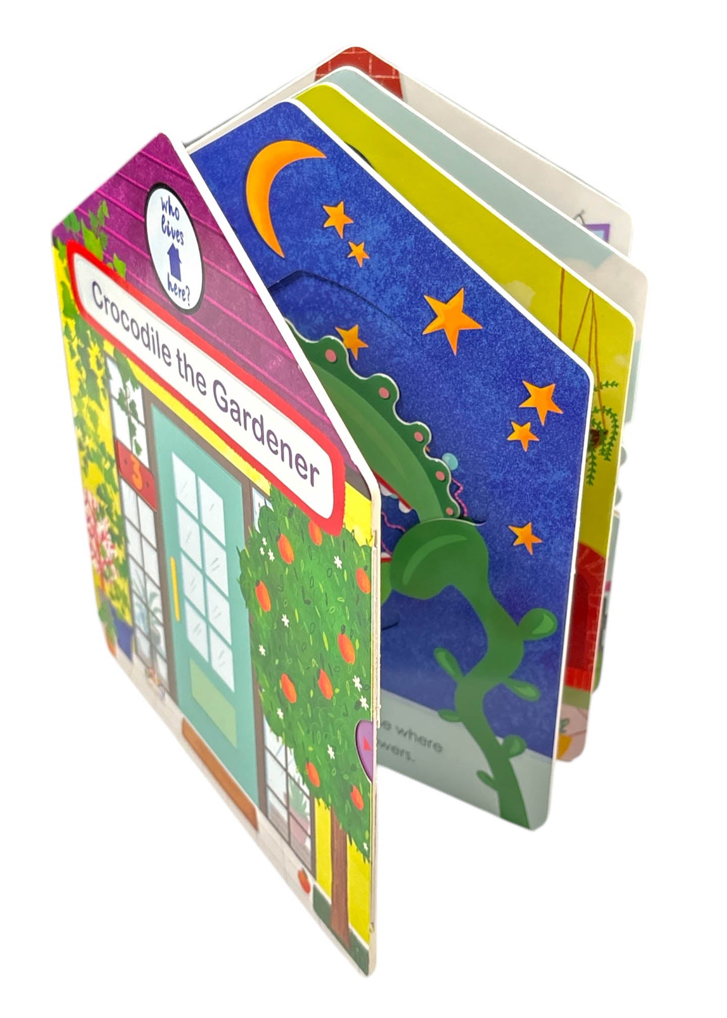 Knock knock! Who lives here? Young children will love pulling up the sliders to see who's behind the doors of these adorable mini houses!