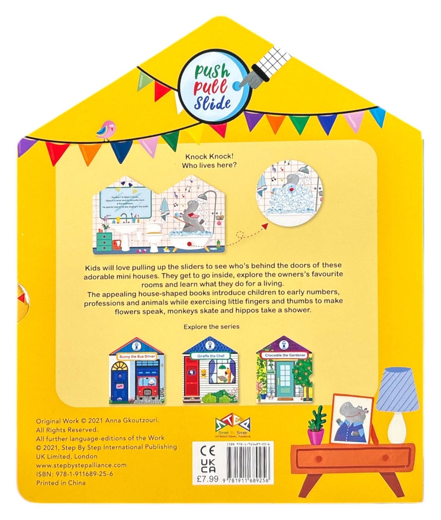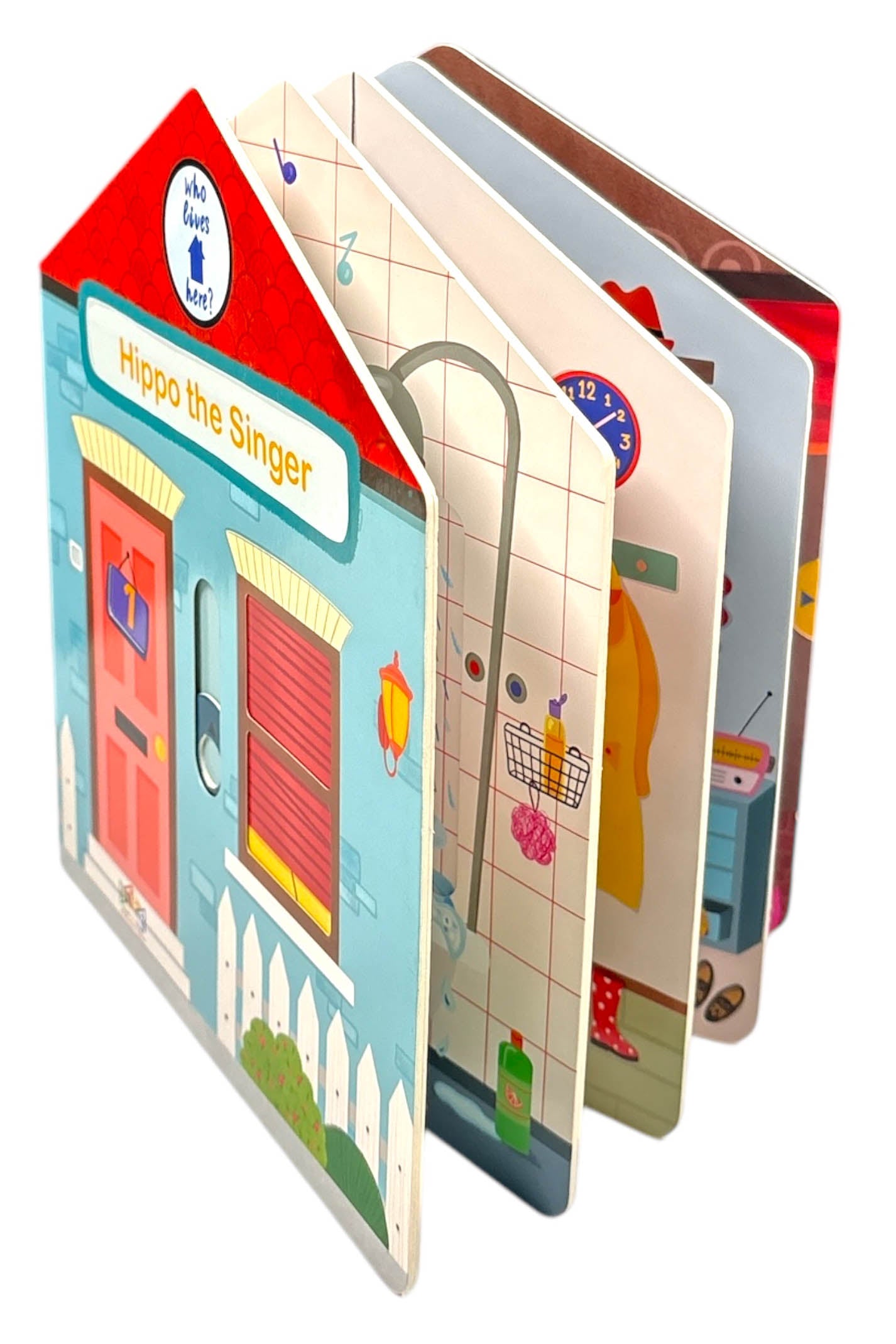 Knock knock! Who lives here? Young children will love pulling up the sliders to see who's behind the doors of these adorable mini houses! They get to goinside, explore the owners' favourite rooms and learn what they do for a living.