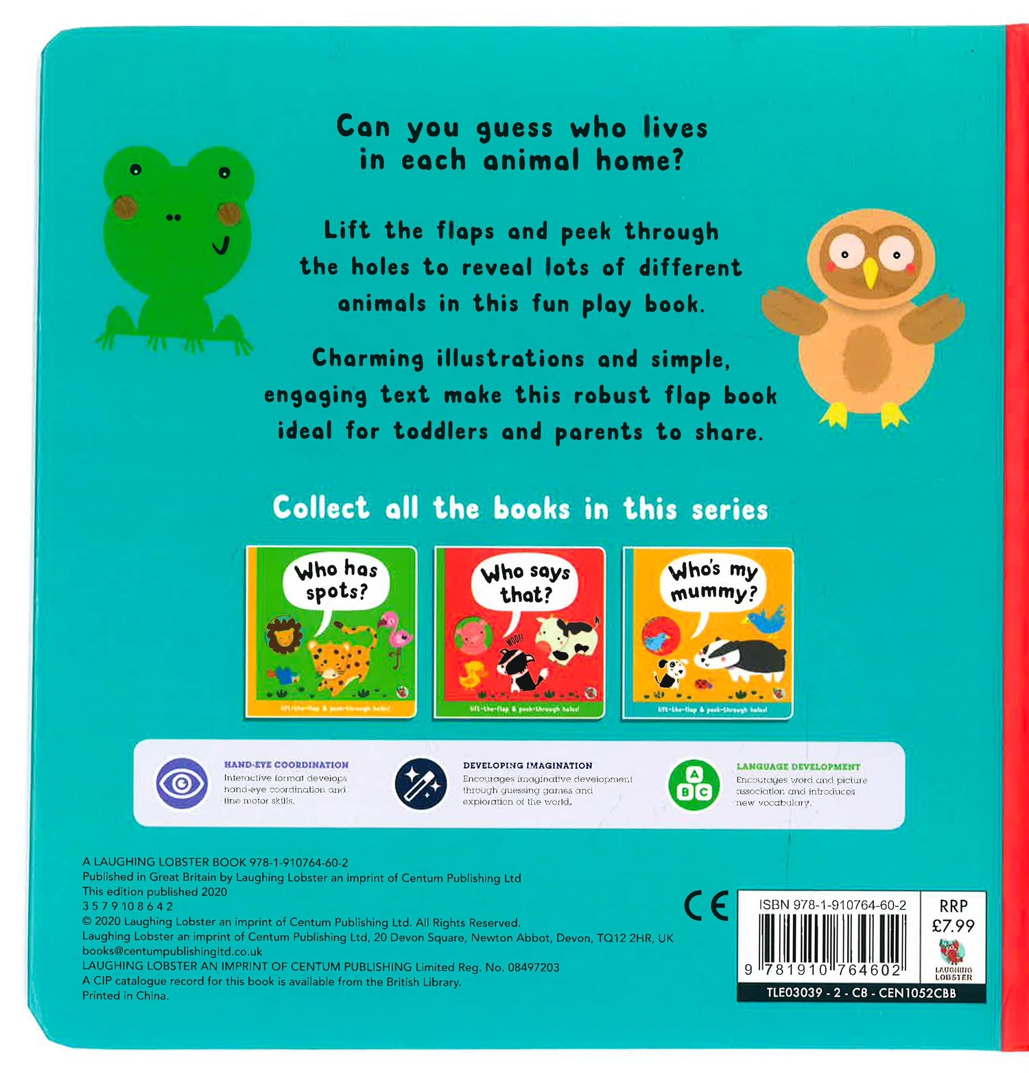 Great new Lift the Flap books for young kids from Laughing Lobster!Adorable early learning board book about animal homes.Lift the flap on each spread to reveal the answer to a simple question. Extra peep holes under the flaps to intrigue and delight young readers.