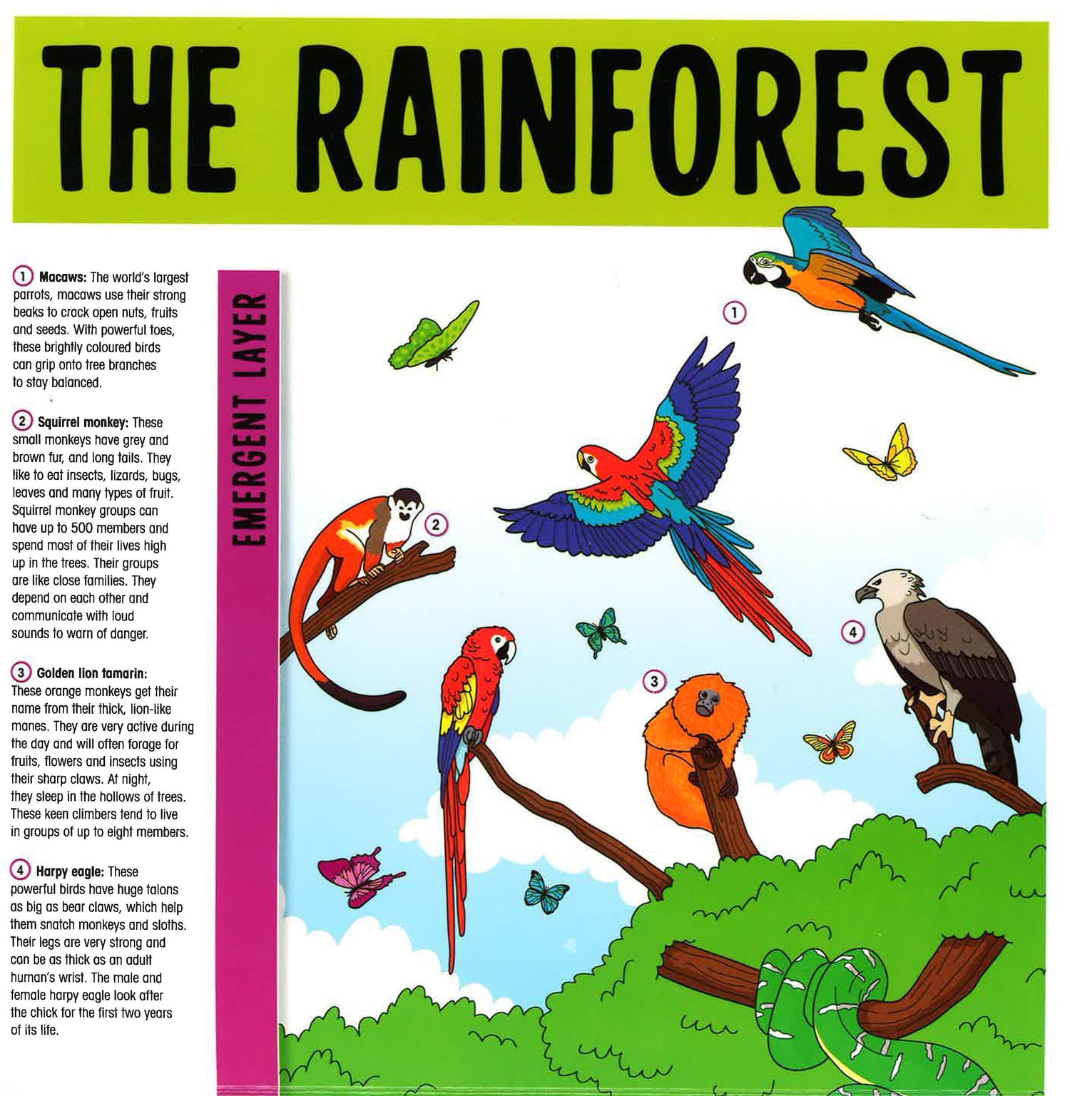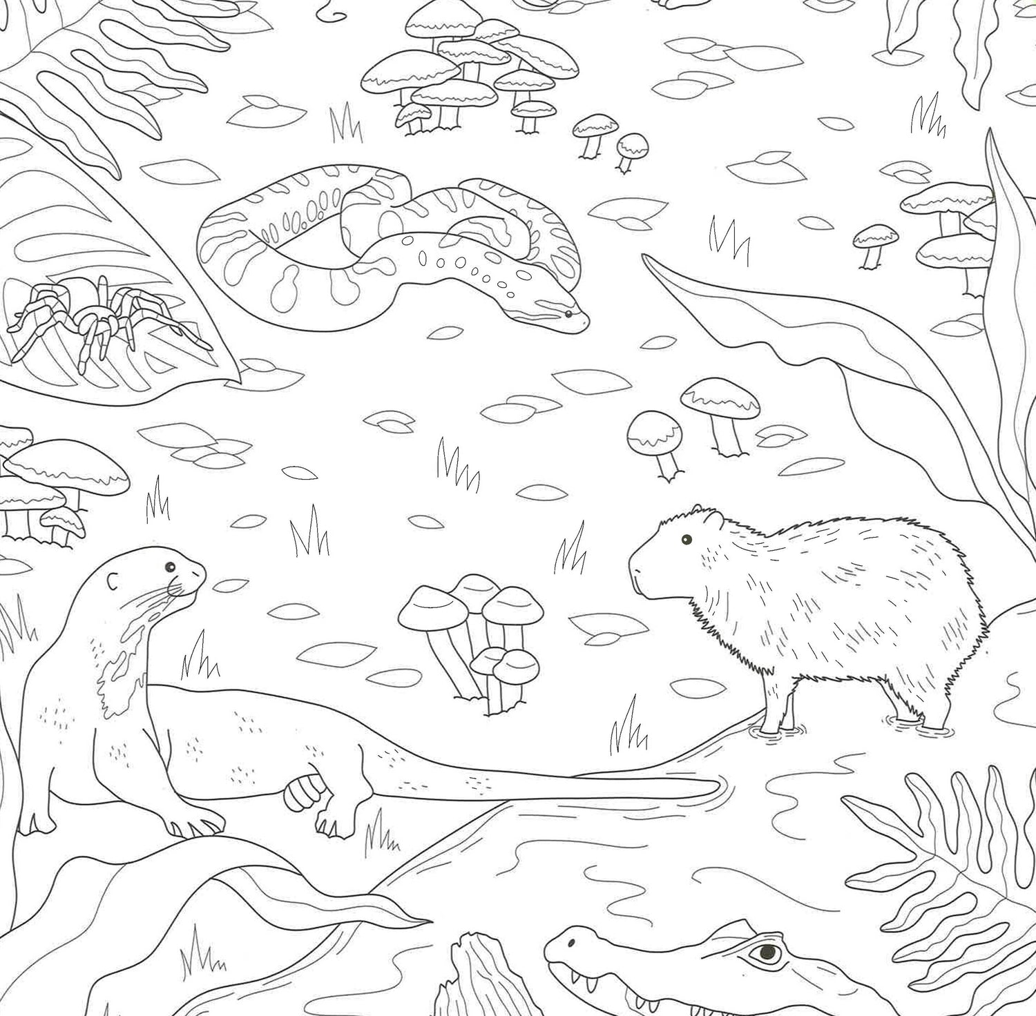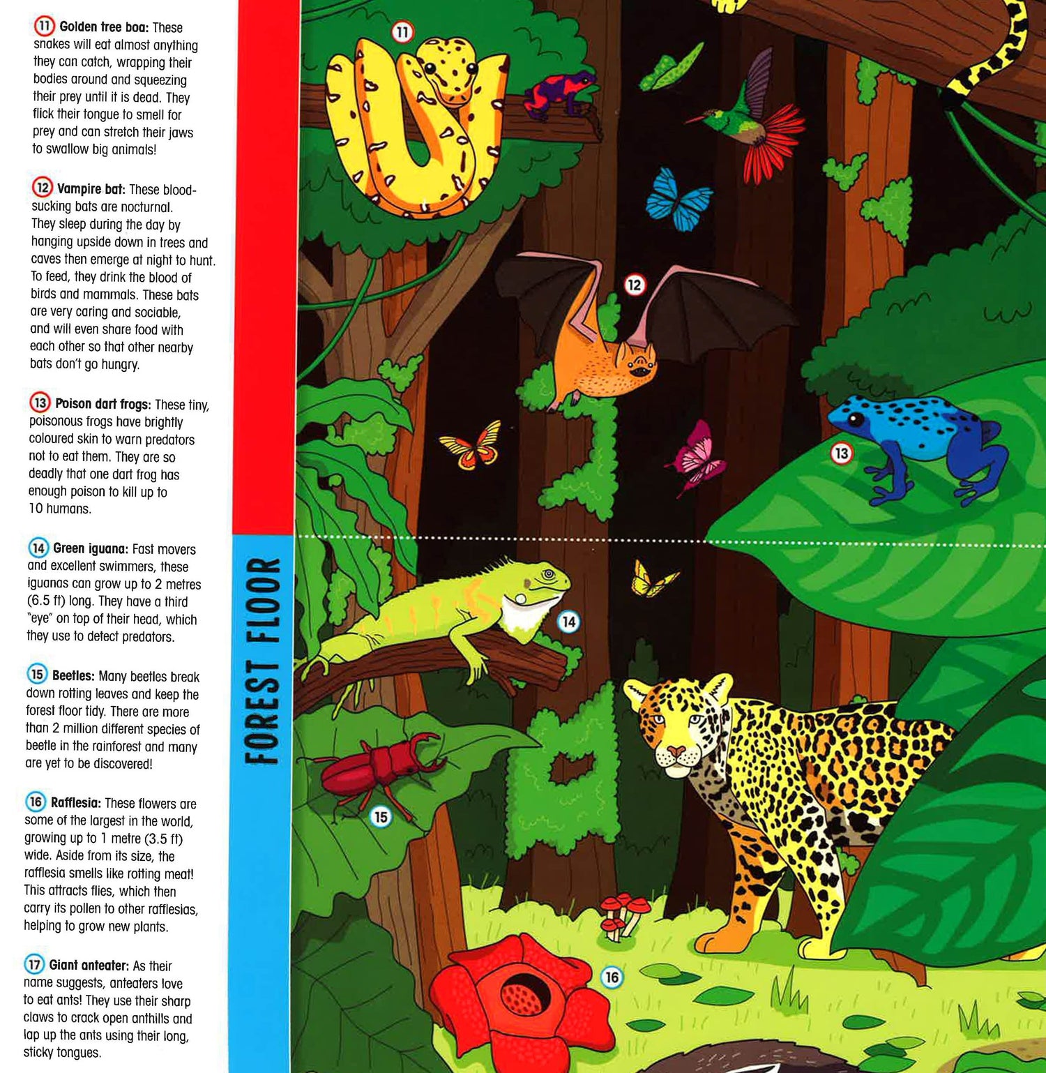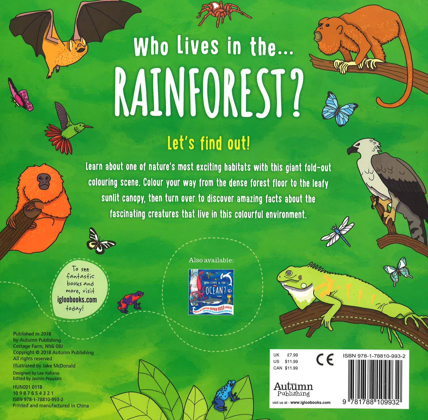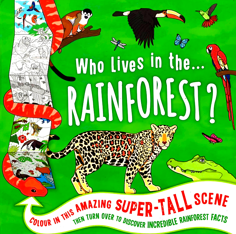 Learn about one of nature's most exciting habitats with this giant fold-out colouring scene. Colour your way from the dense forest floor to the leafy sunlit canopy, then turn over to discover amazing facts about the fascinating creatures that live in this colourful environment.