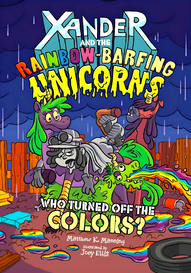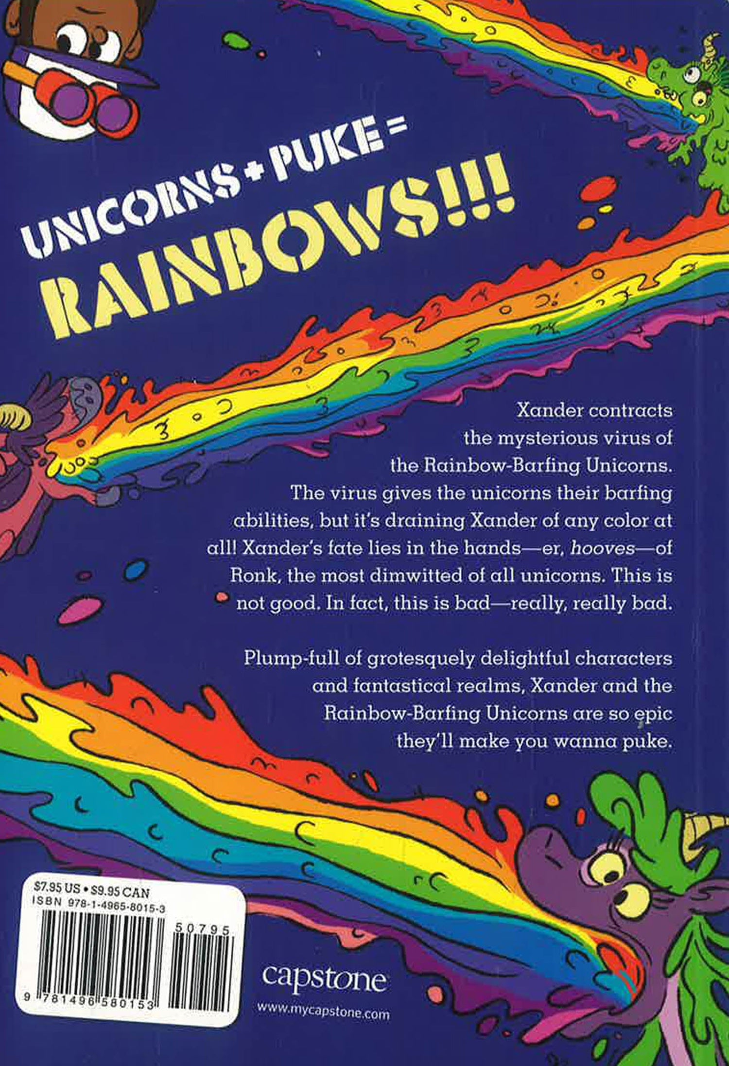 The Rainbow-Barfing Unicorn virus hasn't infected humans . . . until now! In this adventure, twelve-year-old Xander contracts the mysterious virus of the Rainbow-Barfing Unicorns. The virus gives the unicorns their barfing abilities, but it's having the opposite effect on Xander--it's draining him of any color at all! Xander's fate lies in the hands--er, hooves--of Ronk, the most dimwitted of all Rainbow-Barfing Unicorns. This is not good. In fact, this is bad--really, really bad. Plump-full of grotesquely delightful characters and fantastical realms, Xander and the Rainbow-Barfing Unicorns--from writer Matthew K. Manning (Batman/Teenage Mutant Ninja Turtles Adventures)--is so epic it'll make you wanna puke