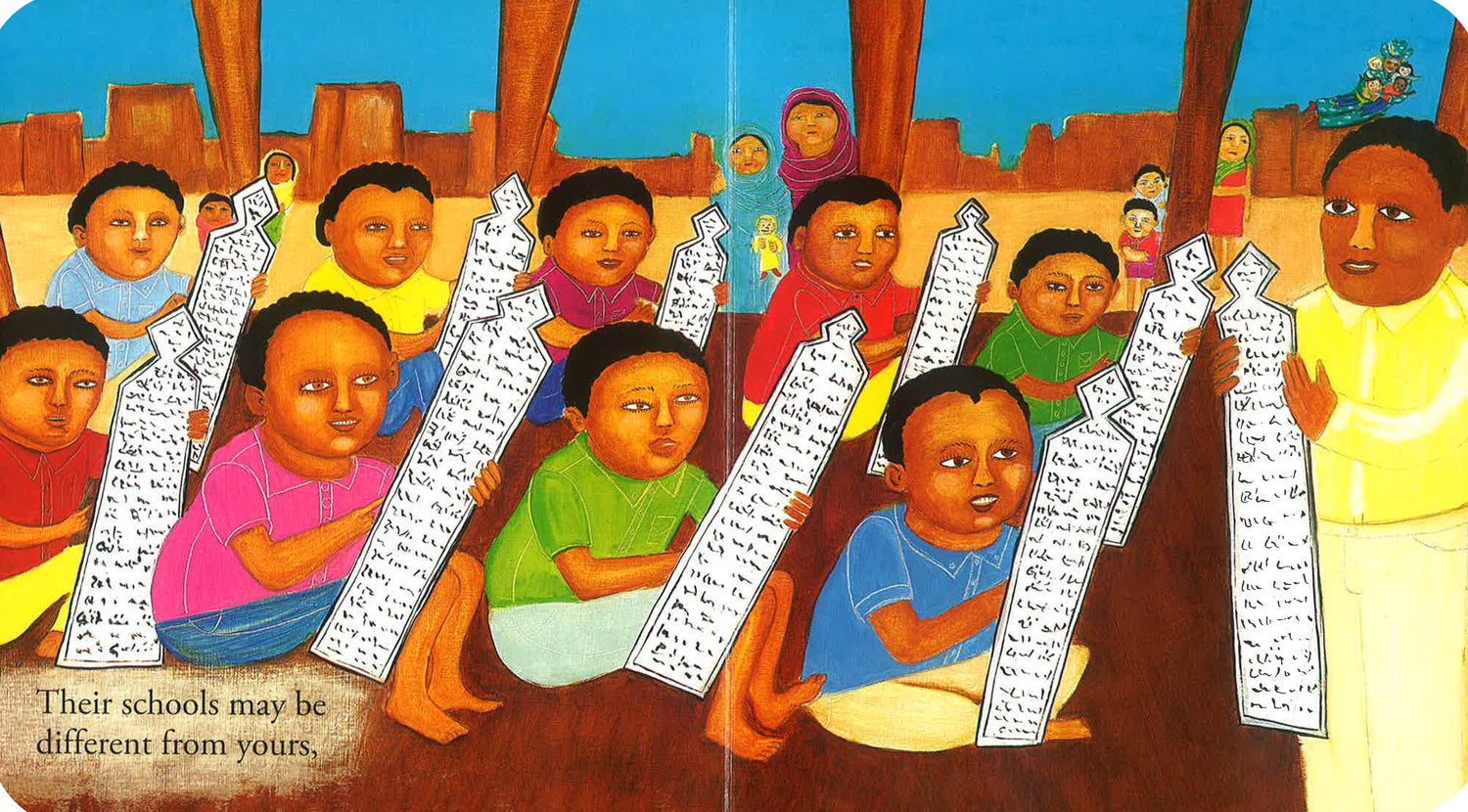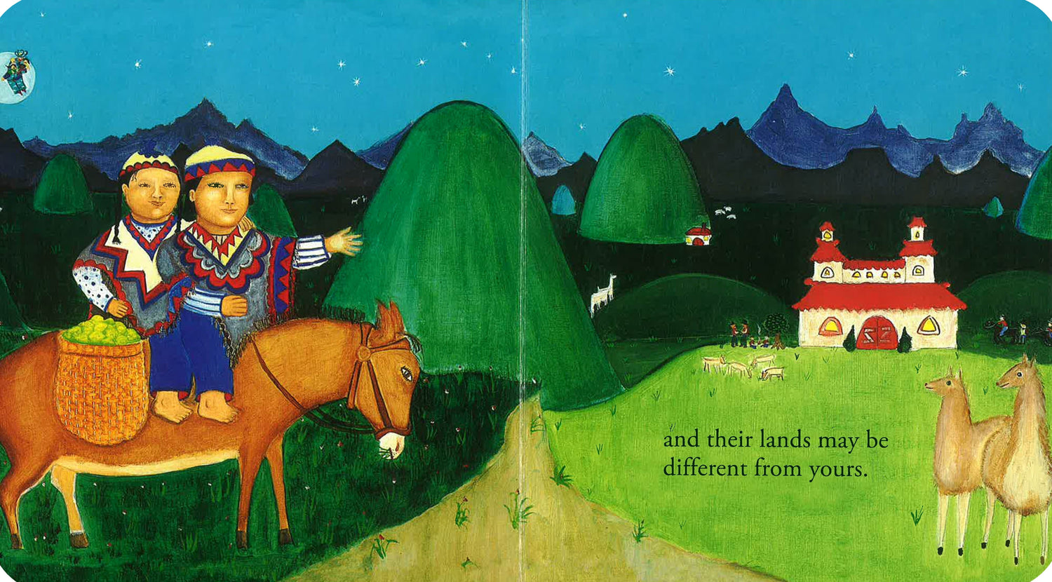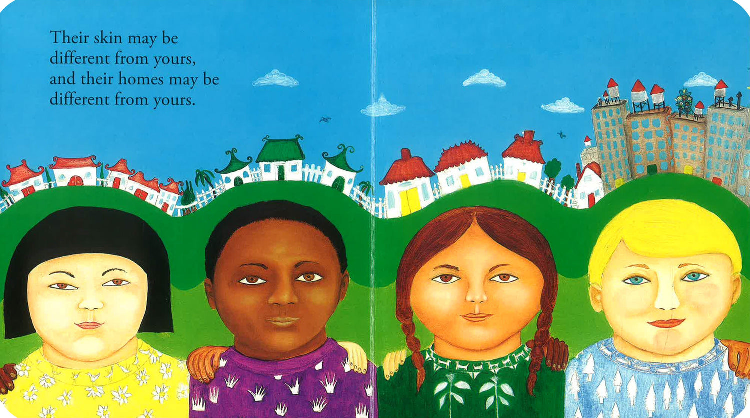 Stirring words and bold paintings weave their way around our earth, across cultures and generations and remind children to accept differences, to recognize similarities, and—most importantly—to rejoice in both.