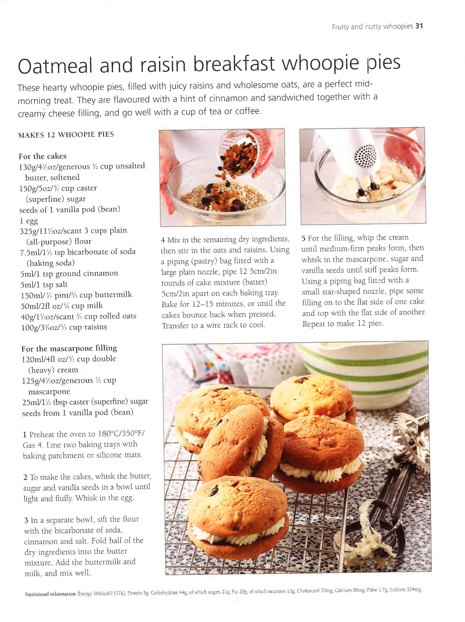 This title offers 70 delectably different recipes shown step by step, with 200 photographs. Bring the indulgences of the bakery to your own home with this sensational new book. There is an irresistible treat for every taste, including "Mocha Whoopie Pies", "Gluten-free Whoopie Pies", "Oatmeal and Raisin Breakfast Whoopie Pies", "Pavlova Raspberry Crunch Whoopie Pies", "Apple Strudel Whoopie Pies", "Ice Cream Sandwich Whoopie Pies", "Fiery Pear Whoopie Pies" and "Cola Cake Whoopie Pies." Try something deliciously different for a special occasion or holiday, with "Hot Cross Bun Whoopie Pies" for Easter, "Mini Pumpkin Whoopie Pies" for Thanksgiving, "Candy Cane Whoopie Pies" for Christmas, the fabulous "Giant Birthday Cake Whoopie Pie" or impress wedding guests with the elegant Wedding Cake Stack. A helpful introduction covers all the ingredients, tools and techniques you will need to start making whoopies at home, with advice on different methods of forming the cakes and how to make different size whoopies. This title is illustrated with 200 photographs, and complete with cook's tips, recipe variations and nutritional breakdowns.