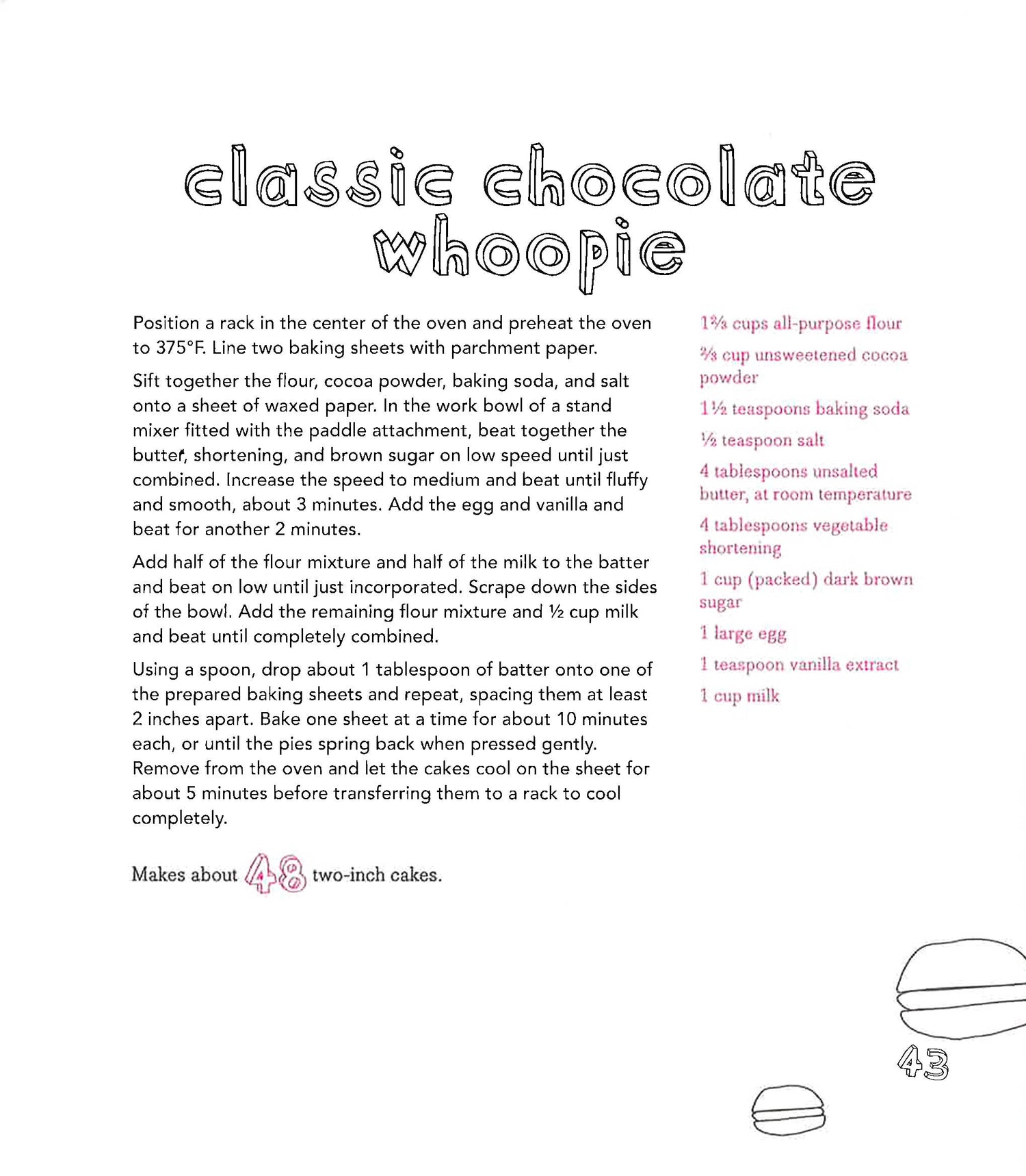 Is it a cake? Is it a cookie? No, it's a whoopie pie! This delightfully tasty dessert lives somewhere between a cookie and a cake with a luscious creamy filling. Loved by kids and adults alike, whoopie pies are the new cupcake and come in a wide variety of flavors and textures. The classic version has a thick layer of marshmallow vanilla cream sandwiched between deep dark chocolately cookie/cakes. Other less conventional varieties include vanilla with strawberry cream filling; lemon whoopies with a spicy ginger buttercream and even an oatmeal whoopie with maple-bacon buttercream fillilng. This book has 40 recipes that can be mixed and matched to create whatever flavour combinations you like.