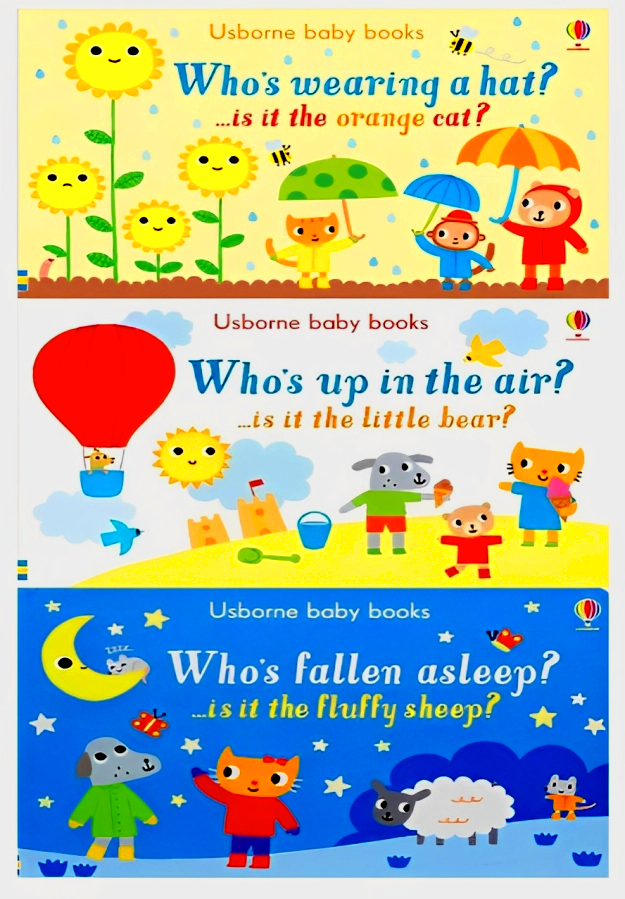 Usborne Baby Books Collection 3 Board Books Set By Sam Taplin (Who's Wearing a Hat, Who's up in the Air, Who's Fallen Asleep)