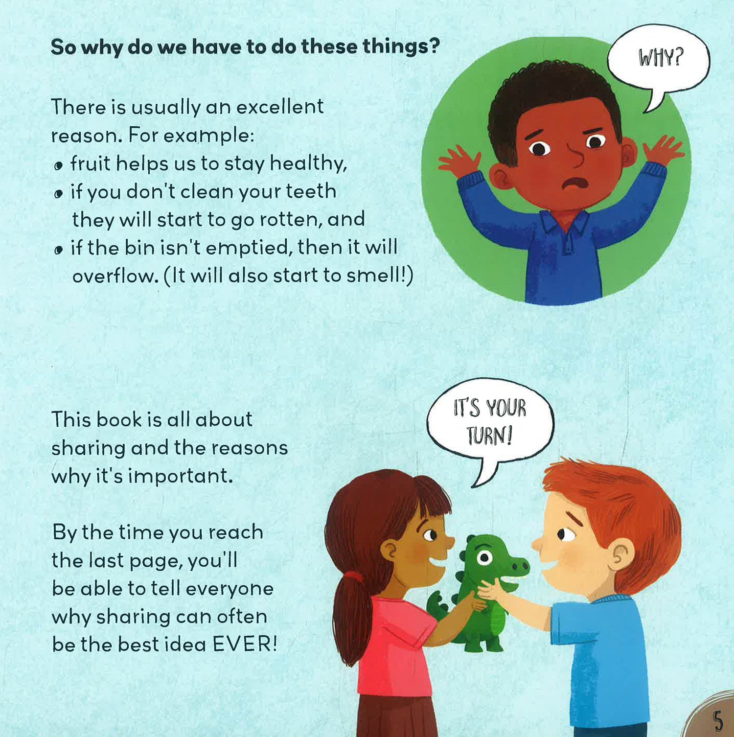 Why Do I Have To is a PSHE series that takes a look at common areas of resistance that young children often can't see the point in doing, such as cleaning their teeth, sharing toys, or eating their greens. They're a great resource for parents, teachers and carers alike as they contain realistic scenarios, discussion points and fast facts. Each scenario presents a problem and then a resolution with a positive and empowering outcome for all involved.