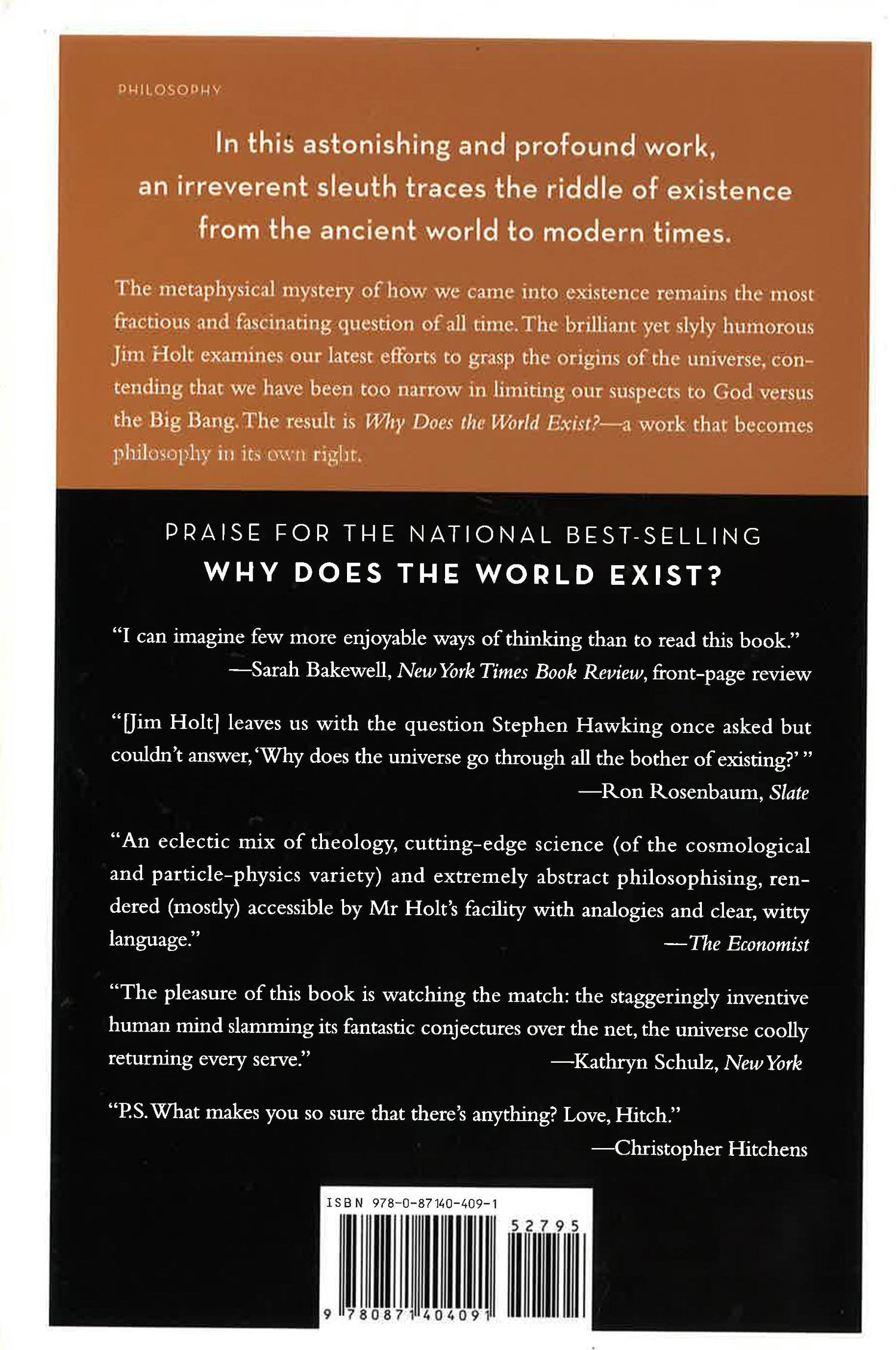 Whether framed philosophically as "Why is there a world rather than nothing at all?" or more colloquially as "But, Mommy, who made God?" the metaphysical mystery about how we came into existence remains the most fractious and fascinating question of all time. Following in the footsteps of Christopher Hitchens, Roger Penrose, and even Stephen Hawking, Jim Holt emerges with an engrossing narrative that traces our latest efforts to grasp the origins of the universe. As he takes on the role of cosmological detective, the brilliant yet slyly humorous Holt contends that we might have been too narrow in limiting our suspects to God vs. the Big Bang. Whether interviewing a cranky Oxford philosopher, a Physics Nobel Laureate, or a French Buddhist monk, Holt pursues unexplored and often bizarre angles to this cosmic puzzle. The result is a brilliant synthesis of cosmology, mathematics, and physics-one that propels his own work to the level of philosophy itself.