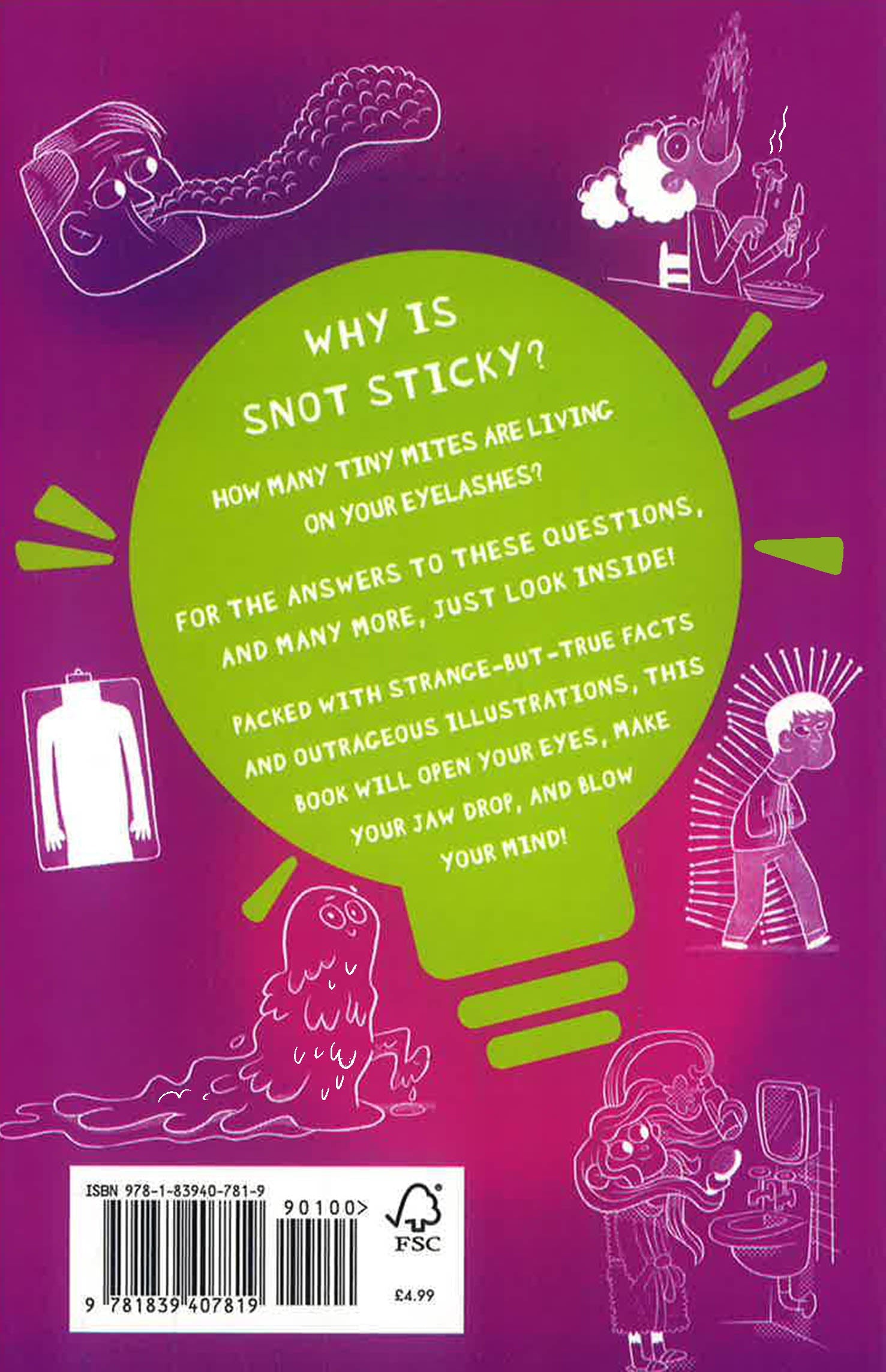 Young readers can discover the answers to these questions and more in this astounding book, which is overflowing with fascinating - not to mention disgusting - facts about the human body. From peculiar parasites to weird bodily functions, children can learn the science behind the sticky, gross and bizarre!