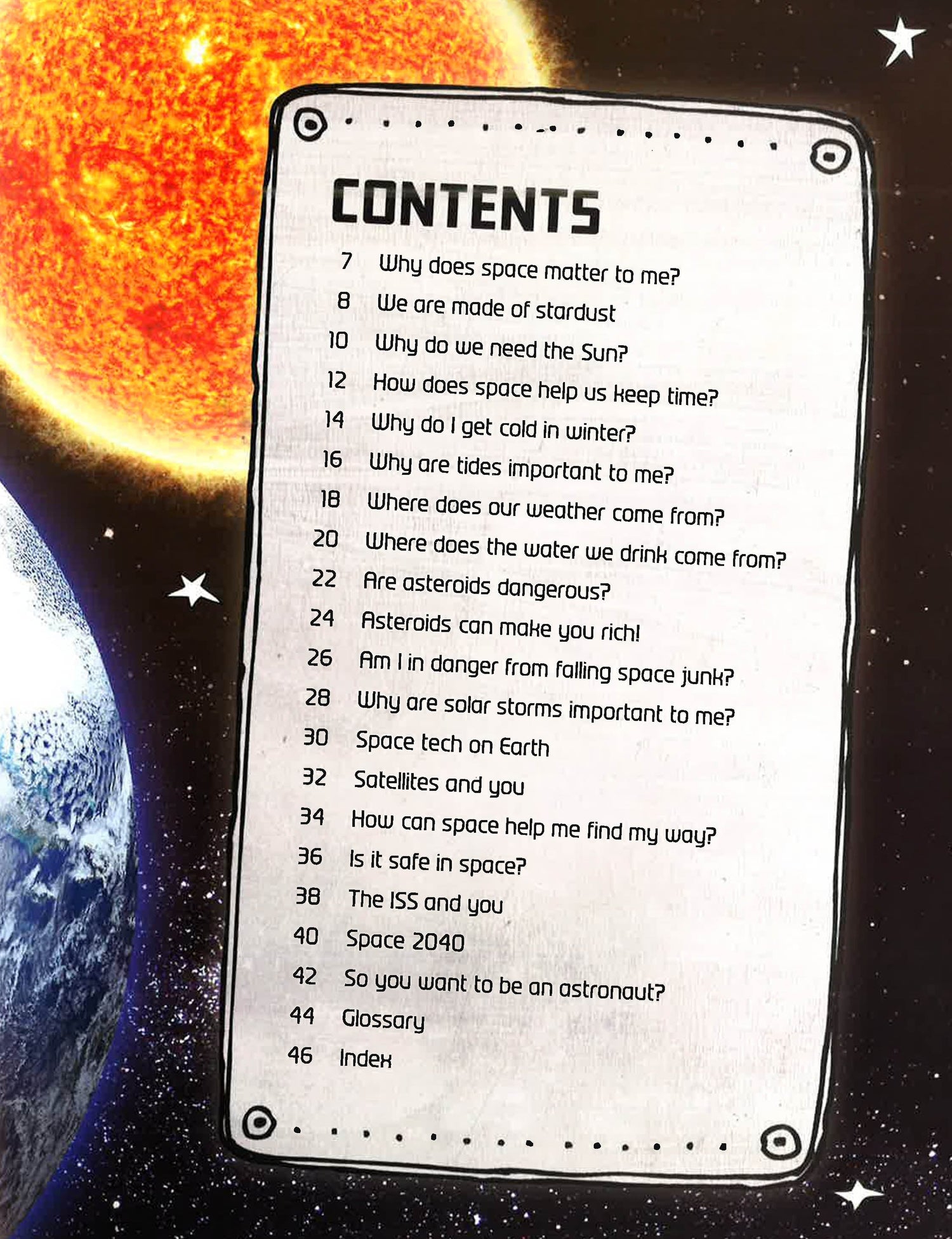 Covering topics such as stardust, weather, seasons, tides, navigation and more, Colin explains the many ways that space is linked to life on Earth. Information is presented in a captivating and personable way, and this unique angle on a popular subject builds on the natural curiosity that children have about the world around them.