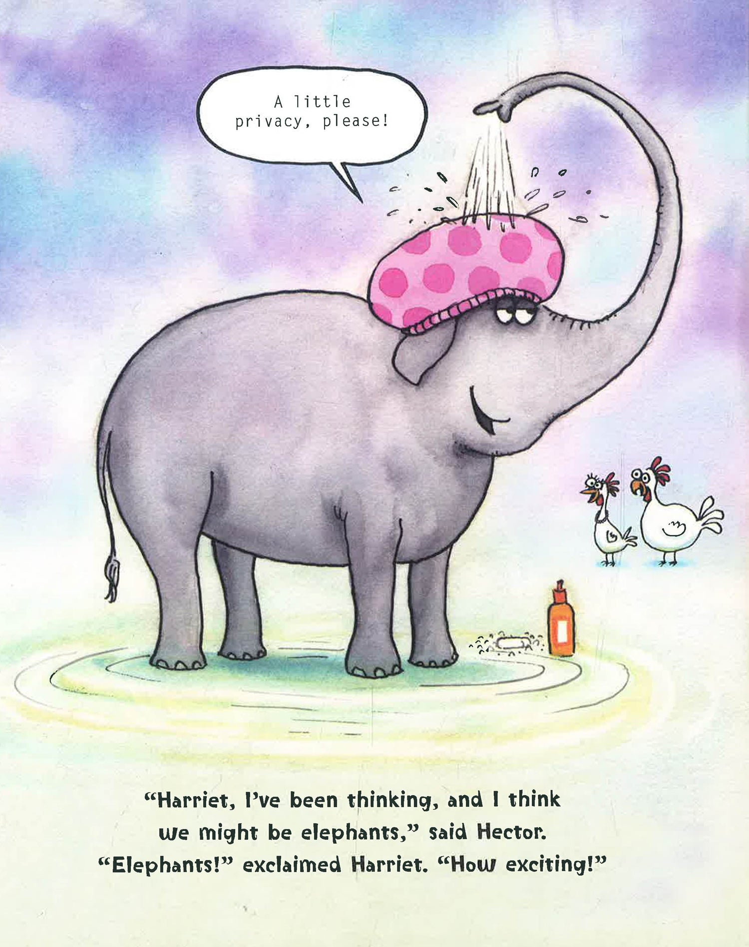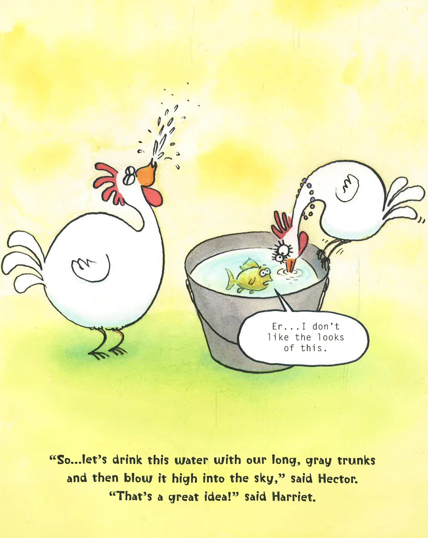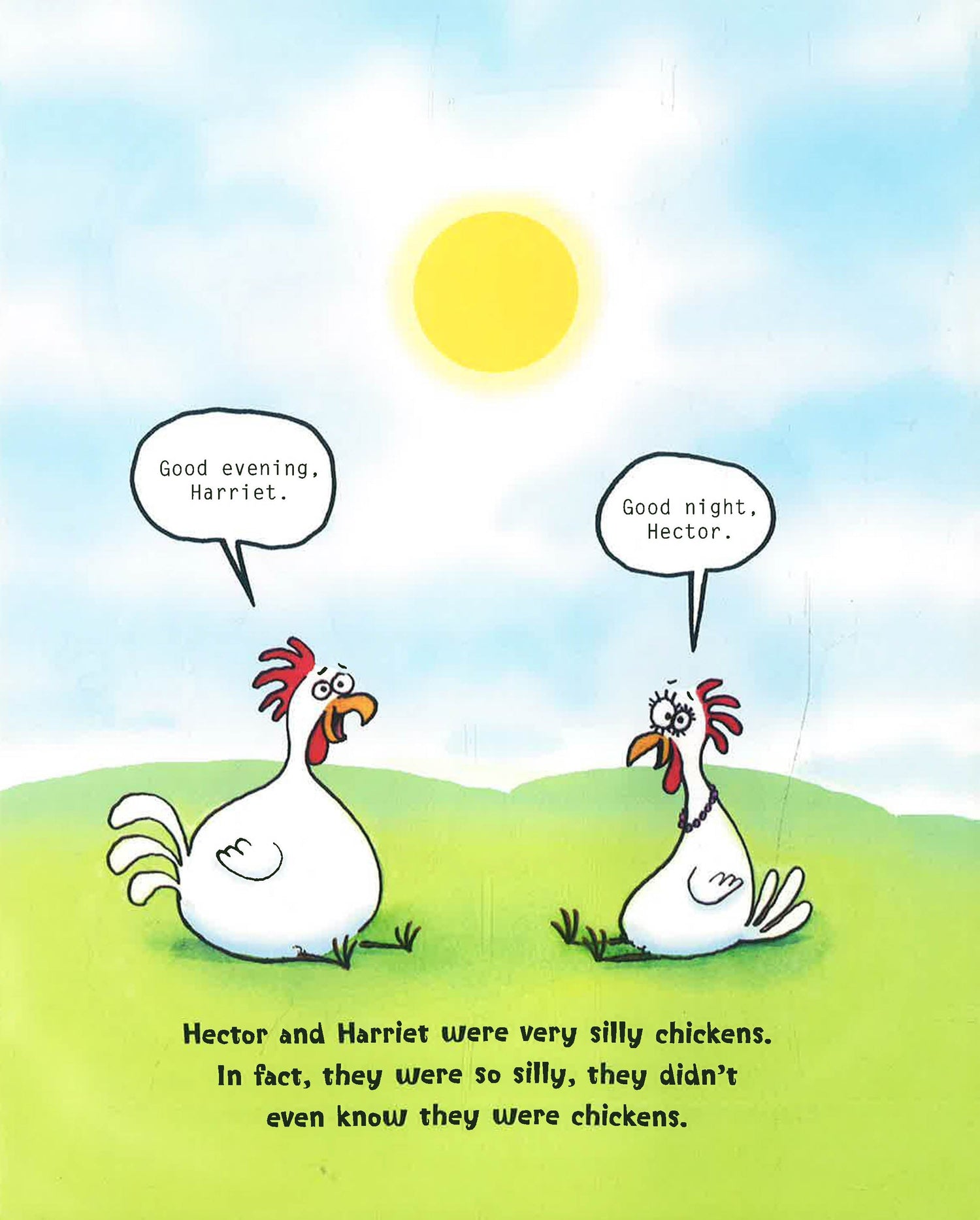 The silly chickens decide they are one animal after another, and try to do what that animal would do.